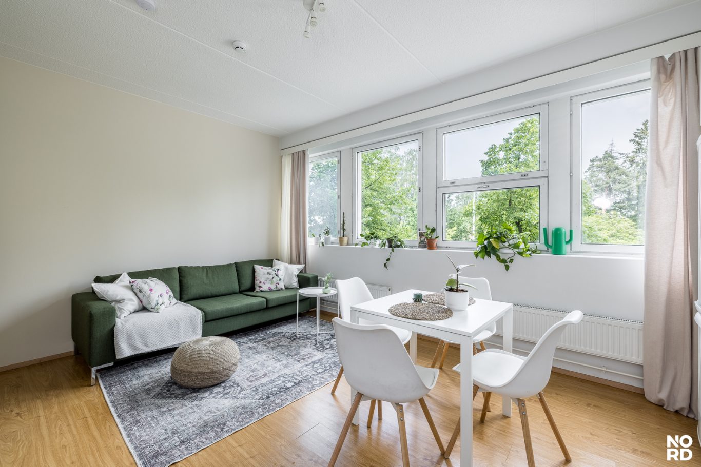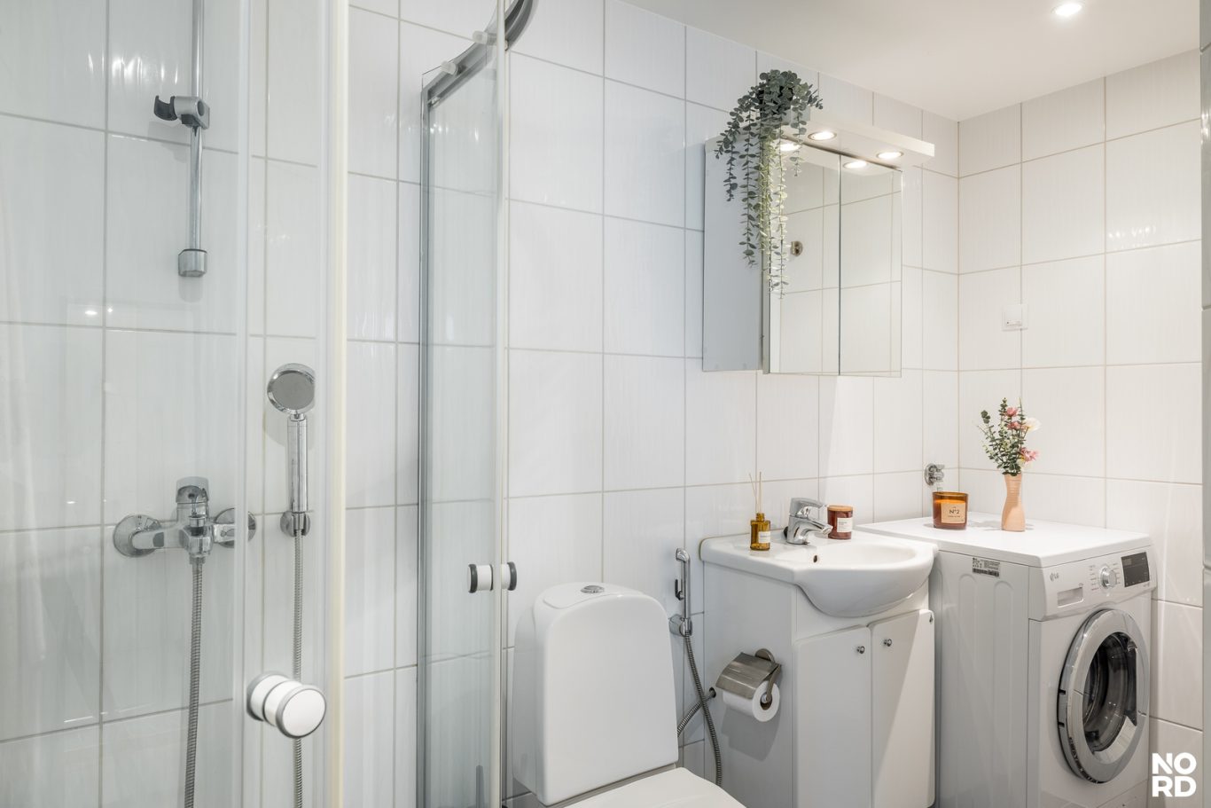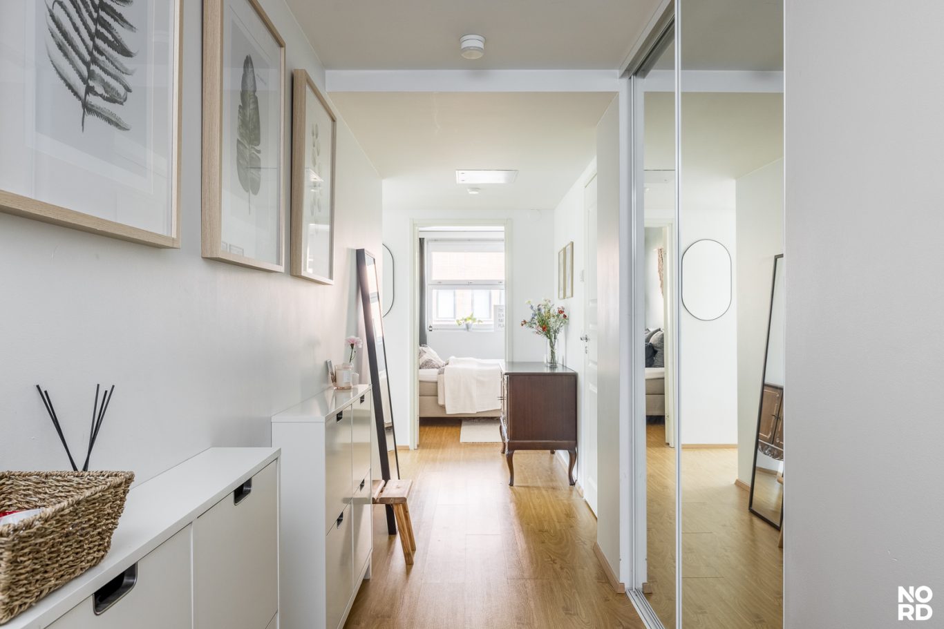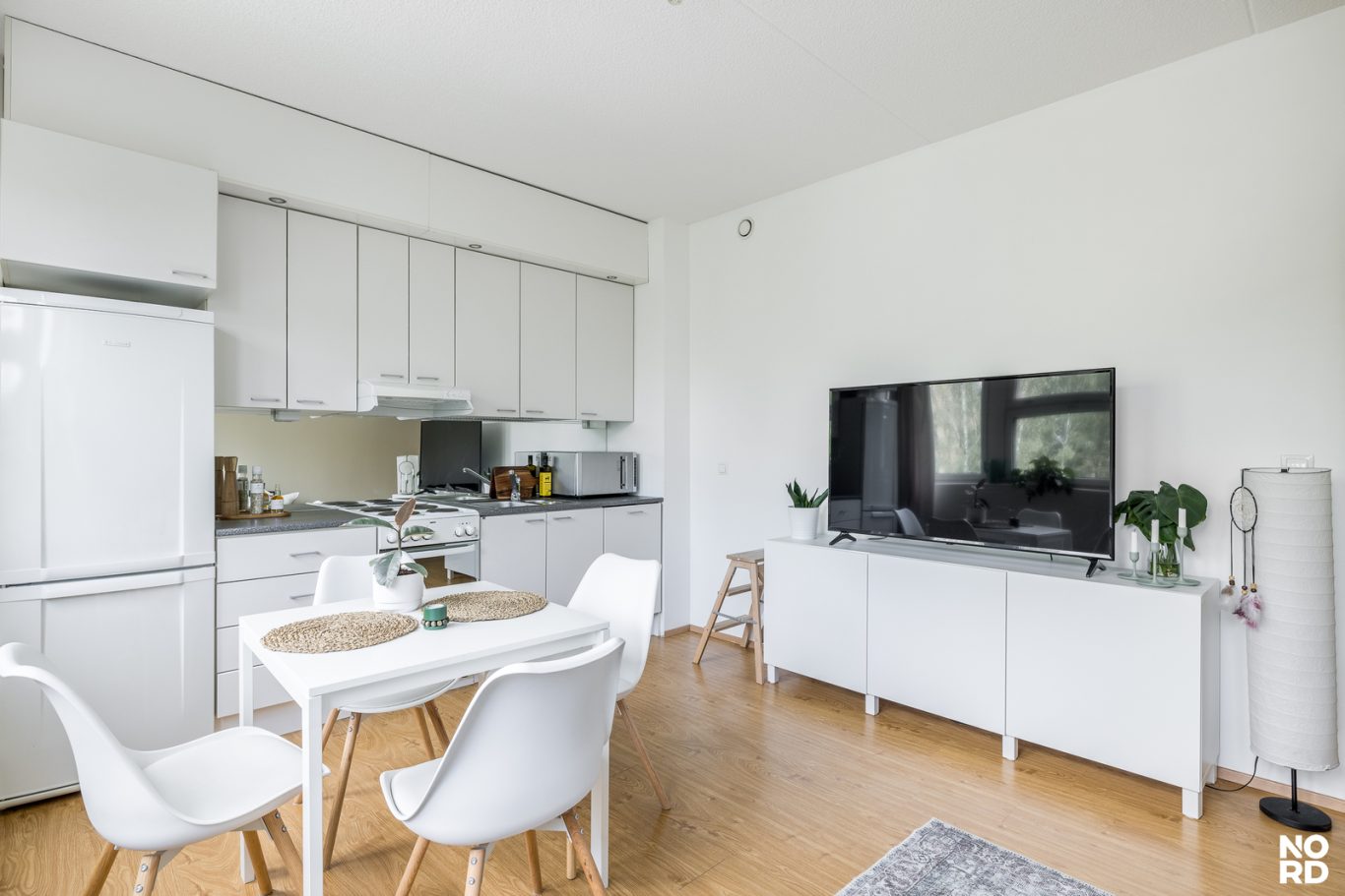 Sijainti on yksi asunnon suurimmista vahvuuksista: liikenneyhteydet ovat kaikin puolin erinomaiset, ja junalla hurauttaa keskustaan 12 minuutissa. Aivan lähistöltä löytyy kattava valikoima palveluita, kuten kauppa, apteekki, ravintoloita ja liikuntamahdollisuuksia, eikä luonnosta tarvitse tinkiä – monipuoliset ulkoilualueet alkavat melkein kotiovelta. Kauppakeskus Kaari kattavine palveluineenkin on vain kilometrin päässä.