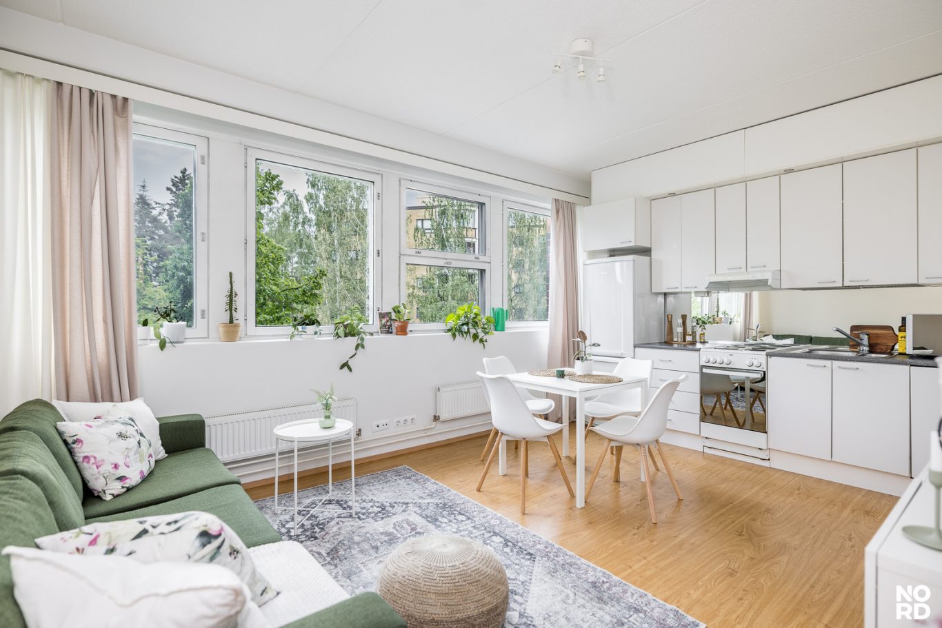 Tämä viihtyisä ja 2010-luvulla täysin saneerattu kaksio sijaitsee erinomaisella paikalla Helsingin Lassilassa, aivan Pohjois-Haagan juna-aseman vieressä. Asunnon pohjaratkaisu on selkeä ja toimiva, mikä tekee arjesta sujuvaa ja tilojen hyödyntämisestä helppoa. Tilava vaatehuone tuo mukavasti säilytystilaa, ja lasitettu parveke tarjoaa lisäneliöitä niin arkeen kuin rentoutumiseen.