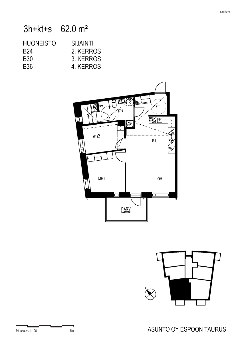 | Yhteensä m² | 62 m² |