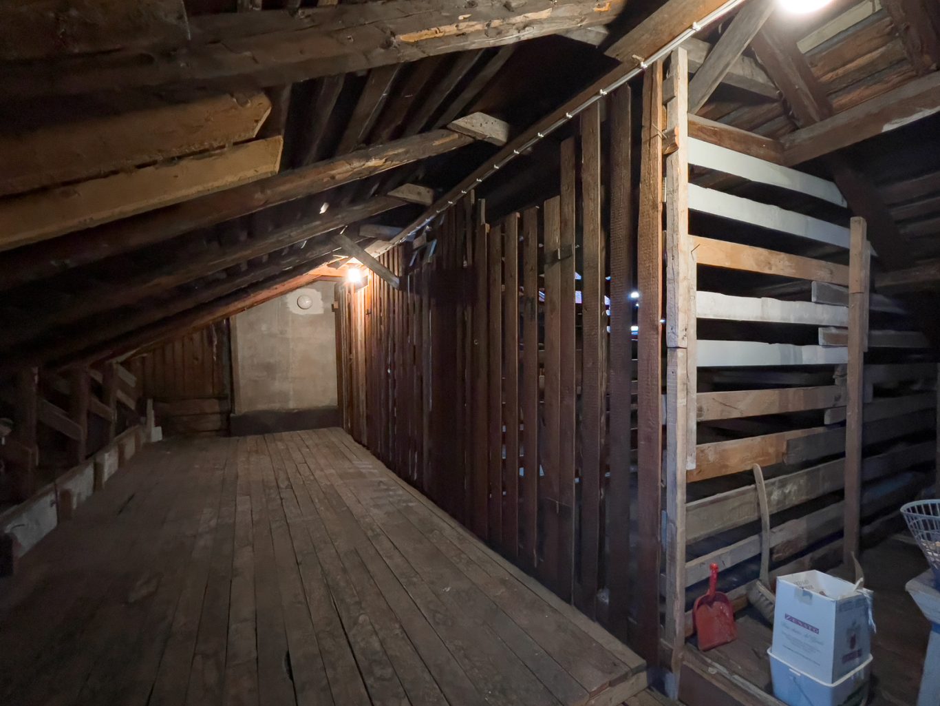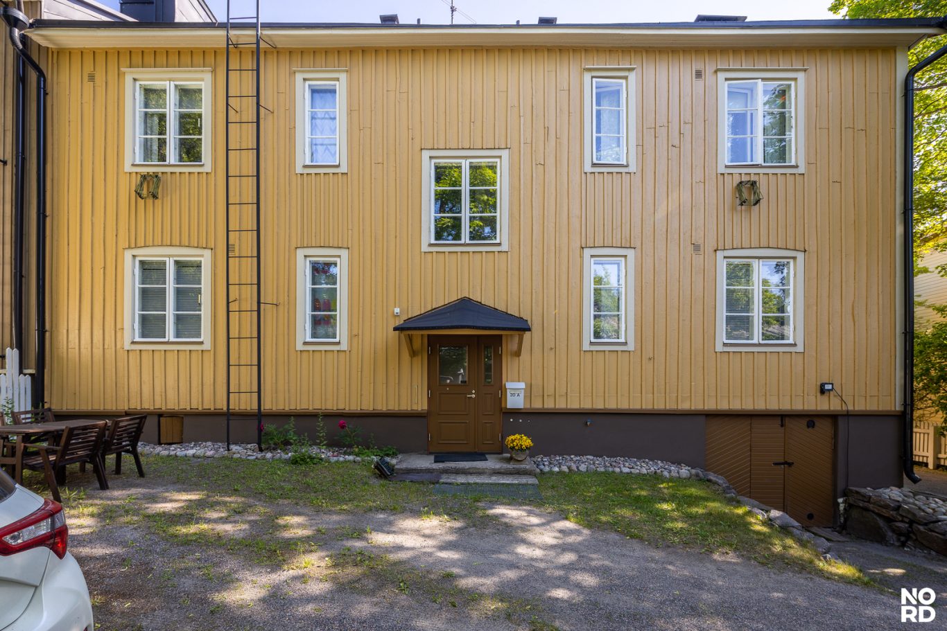 Tunnelmallinen läpitalonhuoneisto hyvin pidetystä 100-vuotiaasta hirsirunkoisesta talosta. Tähän toisen kerroksen kaksioon kuuluu myös 30 neliön raakaullakkotila!