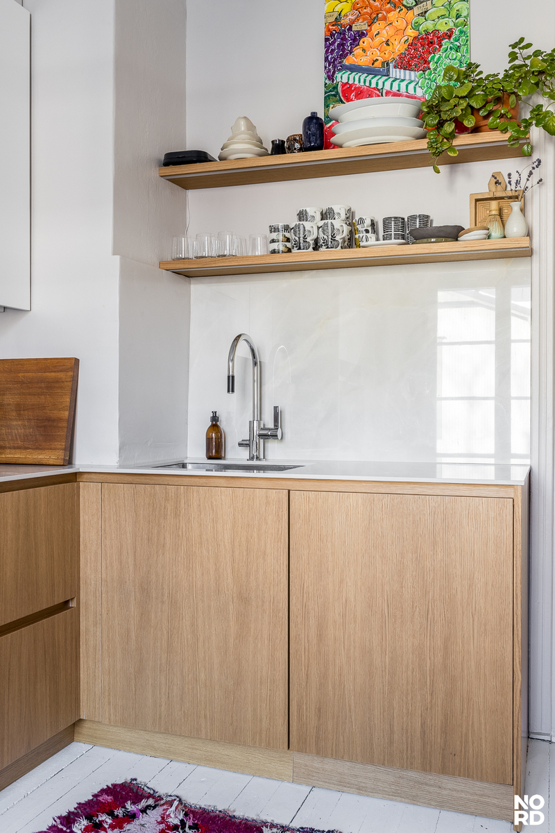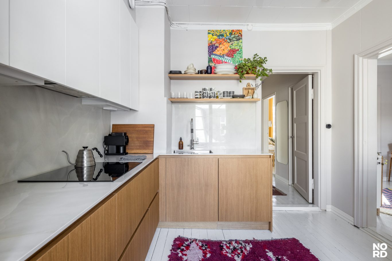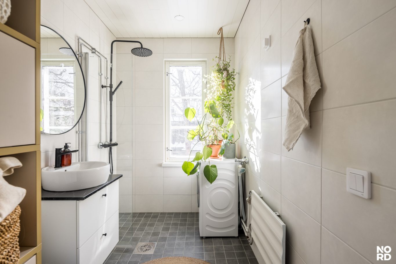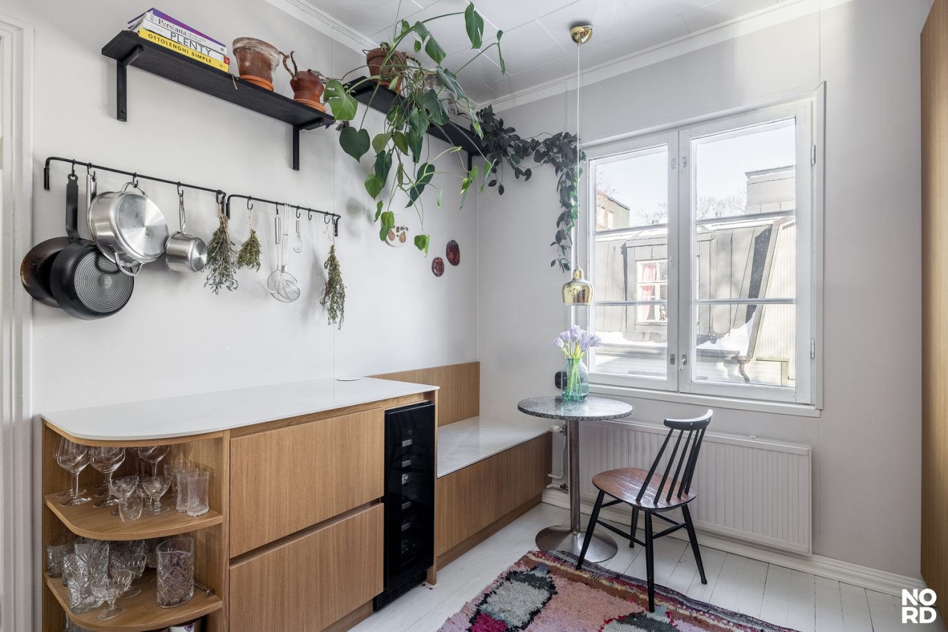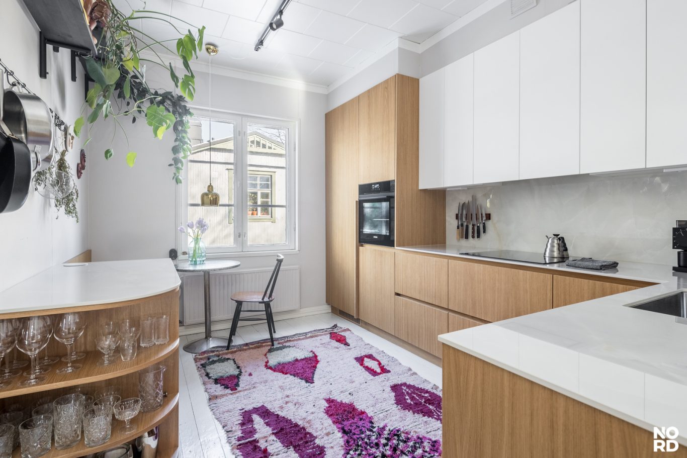 Arkkenilta mittatilaustyönä 2024 teetetty keittiö on varustettu laadukkain, integroiduin kodinkonein ja keraamisin tasoin. Tässä keittiössä yhdistyvät huolellisesti valituttujen materiaalien ja ajattoman designin lisäksi käytännöllisyys. Kaunis aamiaisnurkkaus on keittiön sydän, jossa arki alkaa kiireettömästi. Makuuhuone sijaitsee sisäpihan suojassa ja se on juuri sopivan kokoinen, parisängyn lisäksi sinne sopii esimerkiksi työpiste. Kokonaisuuden kruunaa mukavankokoinen hiljattain täydellisesti päivitetty kylpyhuone, johon valoa tuo ikkuna.