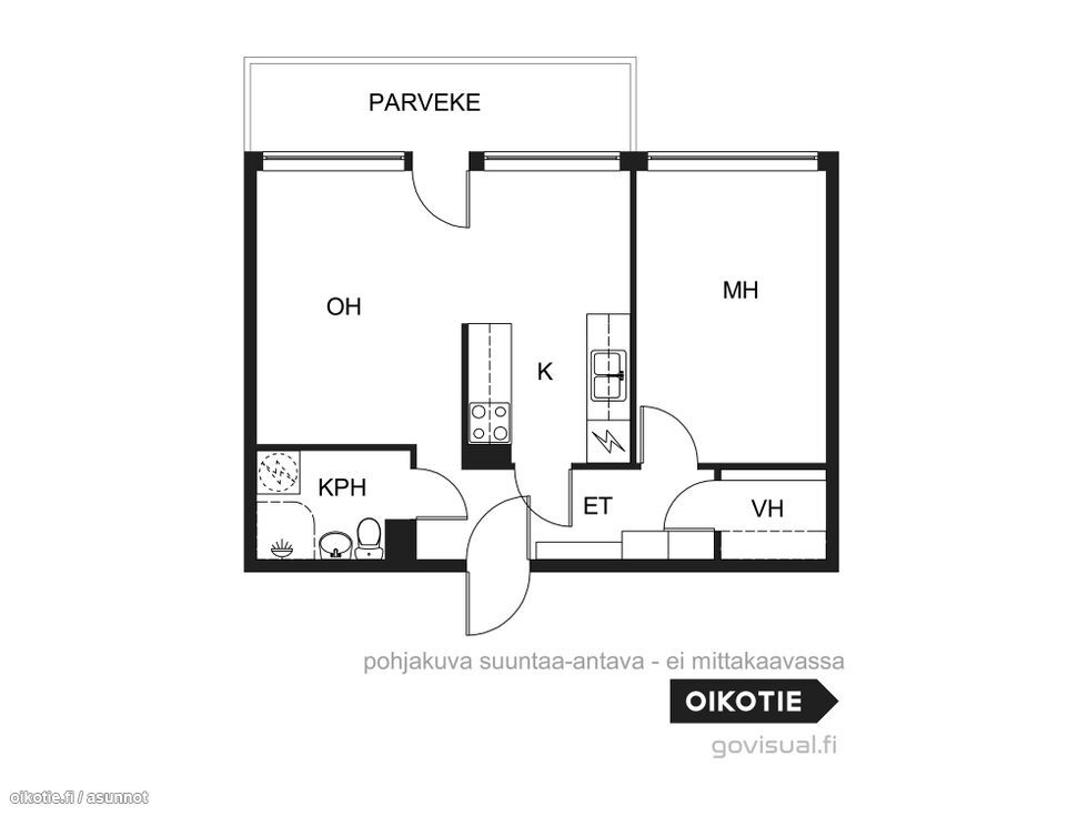 | Huoneistoselitelmä | 2h+k+kph/wc+lasitettu parveke (yj:n mukaan 2h+k) |