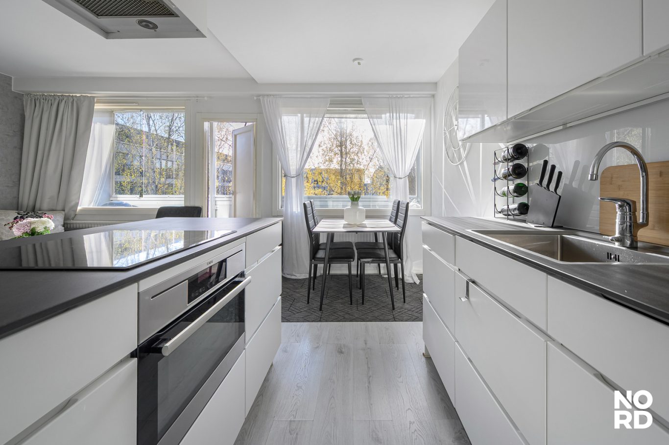 Vuonna 2015 linjasaneerauksen yhteydessä täysin remontoitu koti on moderni ja muuttovalmis. Rauhallinen sisäpihan puoli takaa viihtyisyyden, ja kaikki Tikkurilan palvelut, liikenneyhteydet ja ravintolat löytyvät kävelyetäisyydeltä.