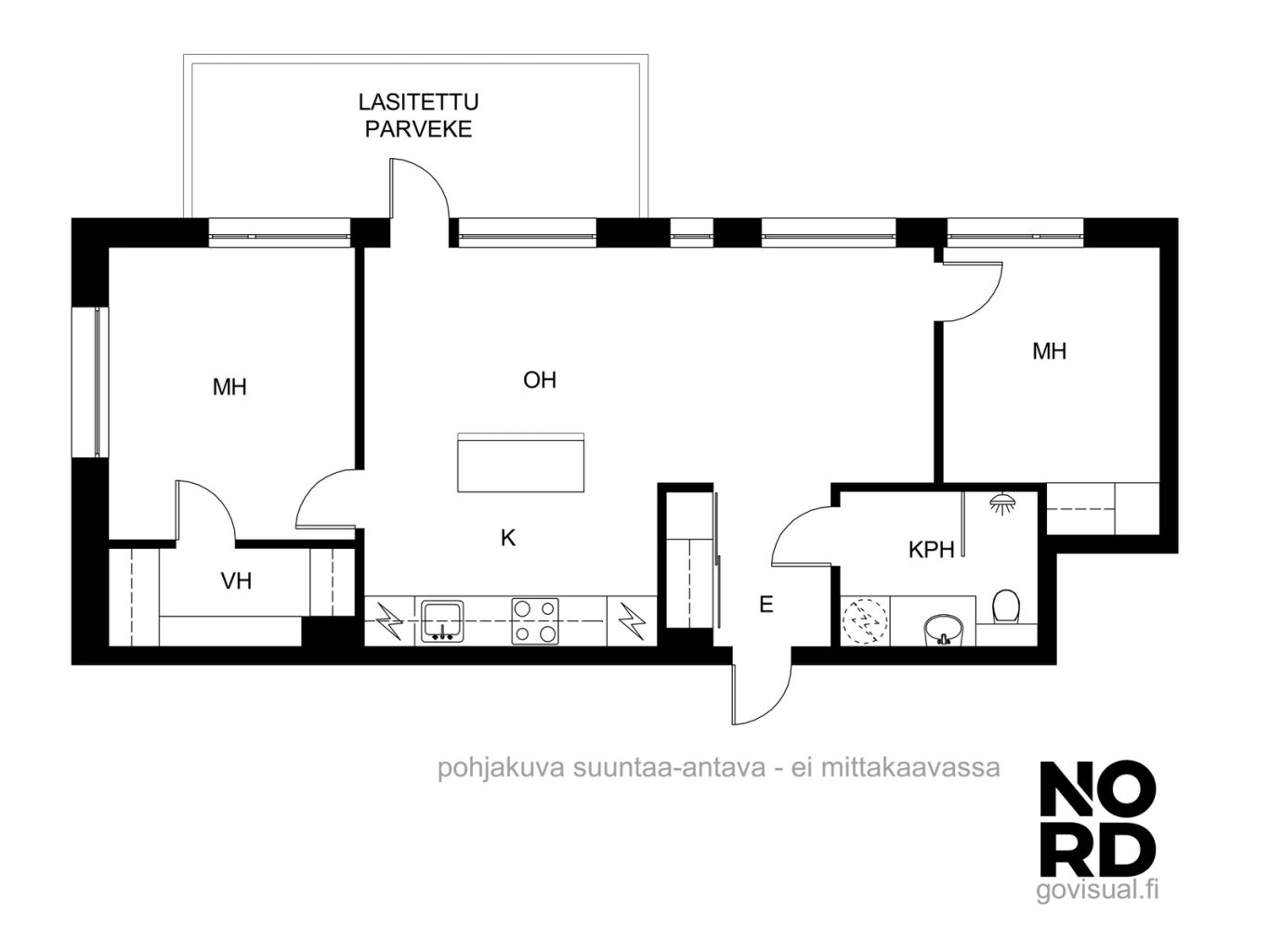 | Huoneistoselitelmä | 3h+avok+kph+vh+lasitettu parveke |