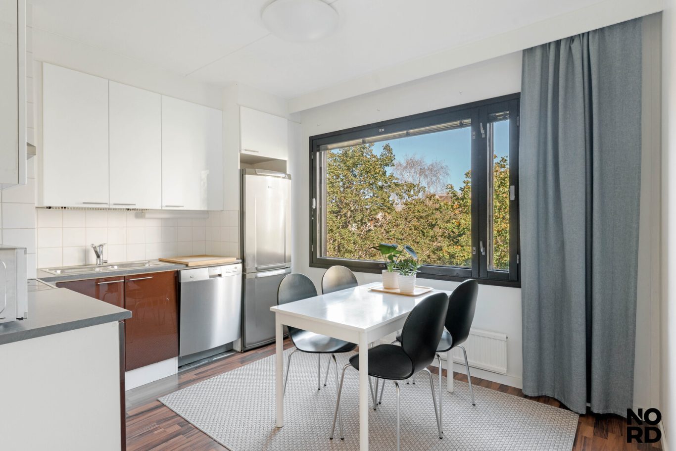 Erillinen keittiö, runsaasti kaappitilaa ja tilaa myös ruokapöydälle