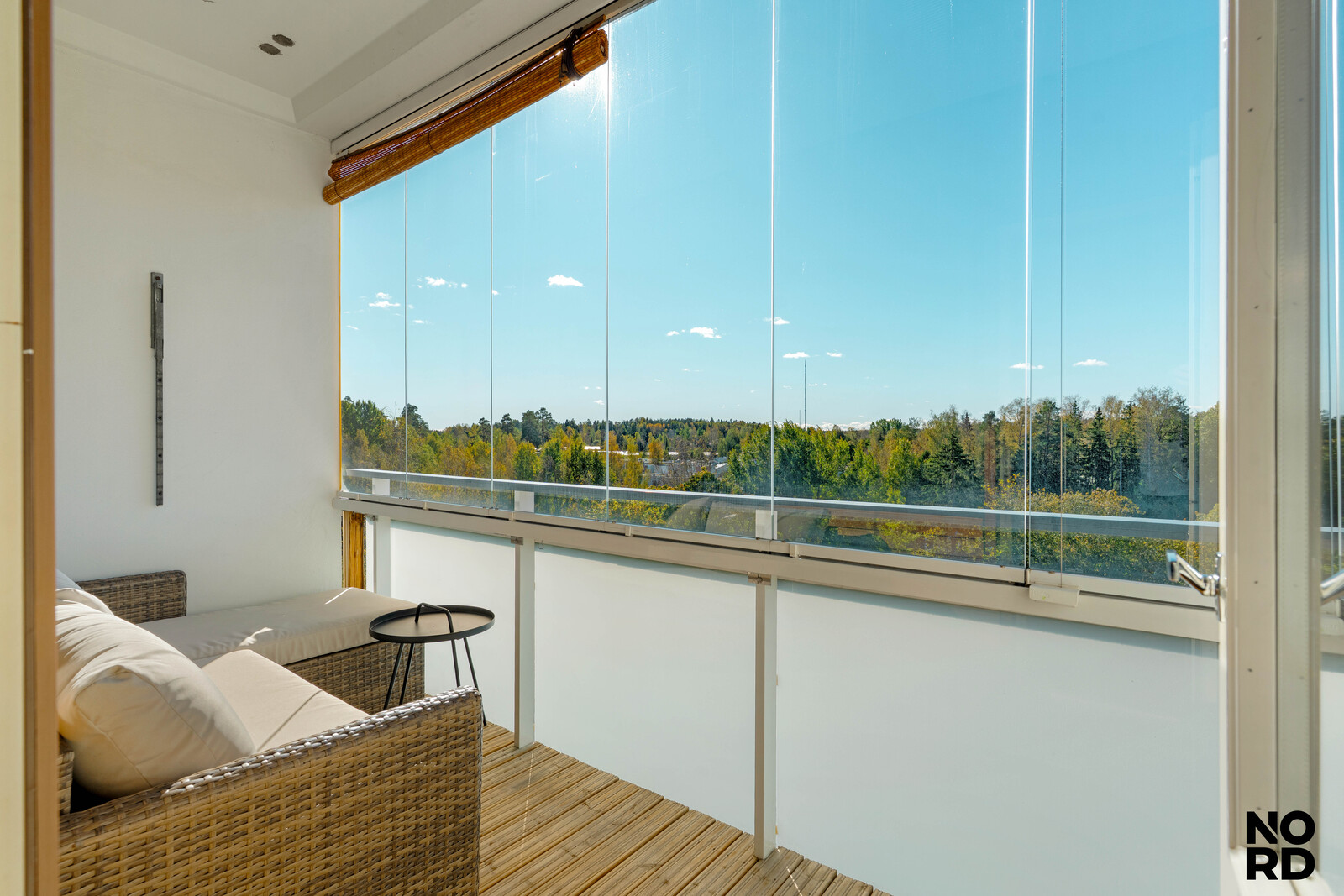 Lasitettu parveke, joka toimii pitkälle keväästä syksyyn lisähuoneena