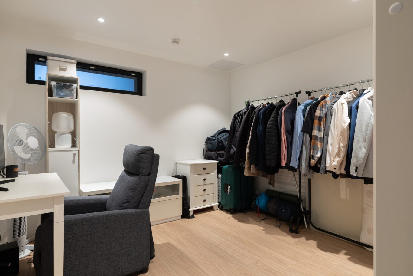 Alakerrasta löytyy arjen sujuvuutta lisäävä kodinhoitohuone omalla uloskäynnillä, erillinen wc, virallinen makuuhuone sekä työtila, joka toimii tällä hetkellä työhuoneena. Lisäksi alakerrassa on upea saunaosasto oleskelutiloineen – täydellinen paikka rentoutumiseen. Koko alakerran huonekorkeus on normaalia korkeampi, mikä tuo tiloihin avaruutta ja ylellisyyttä.