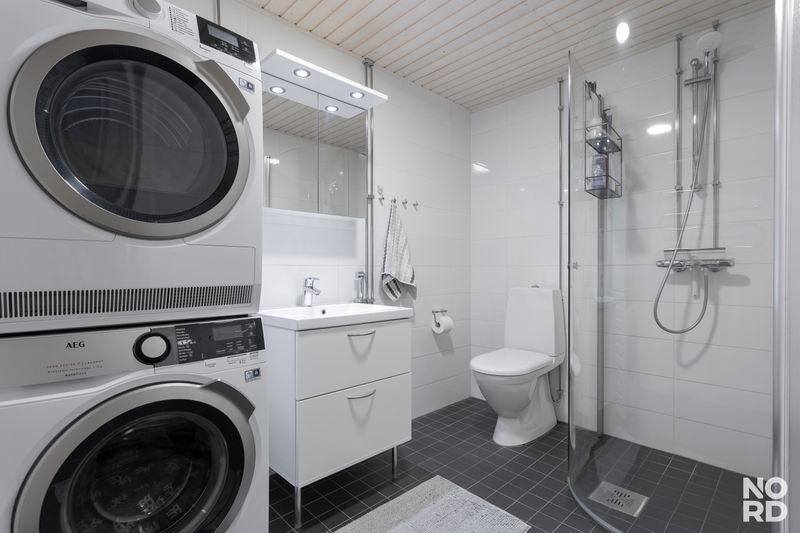 harmonisen kokonaisuuden. Isossa kylpyhuoneessa on hyvin tilaa myös