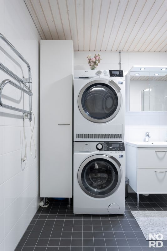 pyykin käsittelyyn. Iso lasitettu parveke. Huoneisto-kohtainen varasto