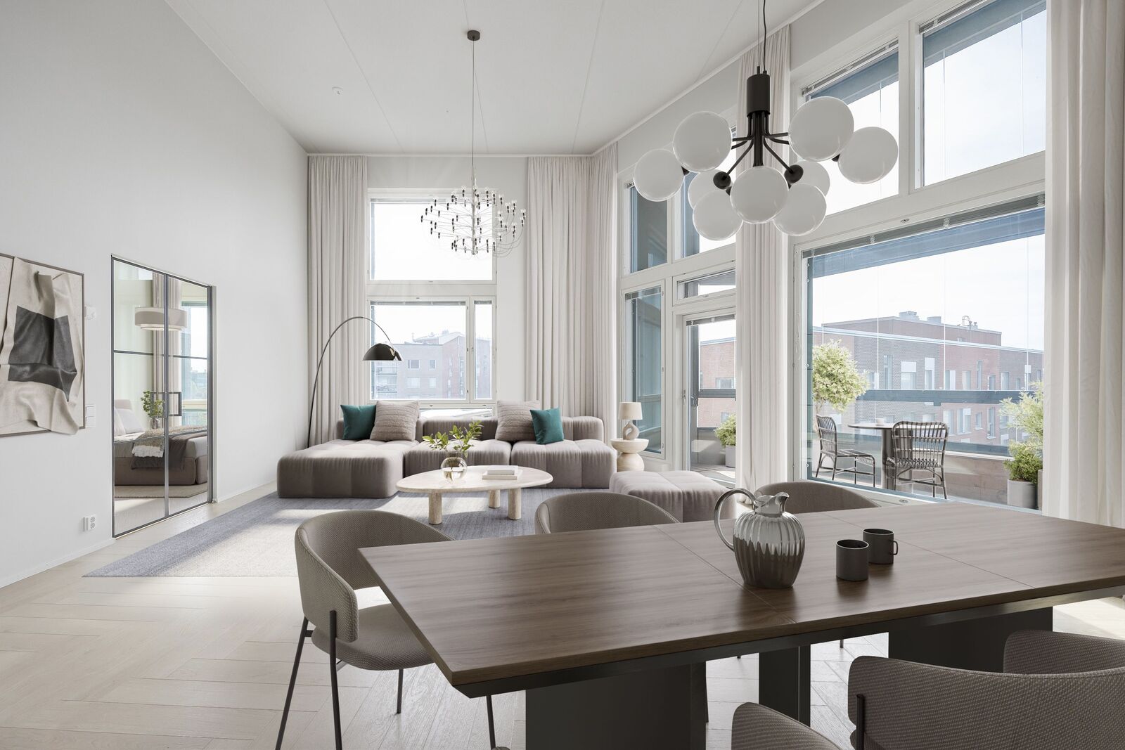 Korkeatasoinen penthouse Postipuiston kattojen yllä. Tämä edustustason huoneisto on avara ja harmoninen kokonaisuus. Ylimmän kerroksen asunnon korkeista ikkunoista tulvii valoa. Huonekorkeus on vaikuttava 4,5 metriä kohteen päätiloissa. Lasitettu terassiparveke on valtava. Parvekkeelta sekä kodista on miellyttävät kaupunkinäkymät ja ilmansuunta on aurinkoinen etelä. Asumismukavuutta lisäävät makuuhuoneiden sähkökäyttöiset pimennysverhot sekä ilmalämpöpumppu (Toshiba Seiya 16). Huoneiston kunto on lähes uutta vastaava.