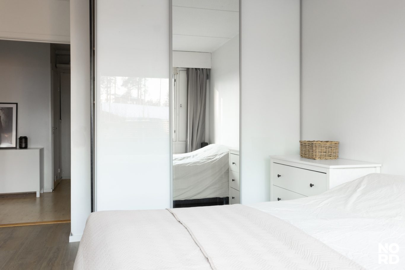 Arjessa helpottavia ratkaisuja tarjoaa erillinen kodinhoitohuone, jossa on runsaasti säilytystilaa ja oma wc-istuin. Lisäksi asunnosta löytyy vaatehuone sekä kaapistot, jotka takaavat hyvät säilytysratkaisut. Alakerran makuuhuoneista toinen avautuu suoraan aidatulle terassipihalle. Yläkerran kolmas huone toimii joustavasti esimerkiksi työtilana, lastenhuoneena tai vierashuoneena.