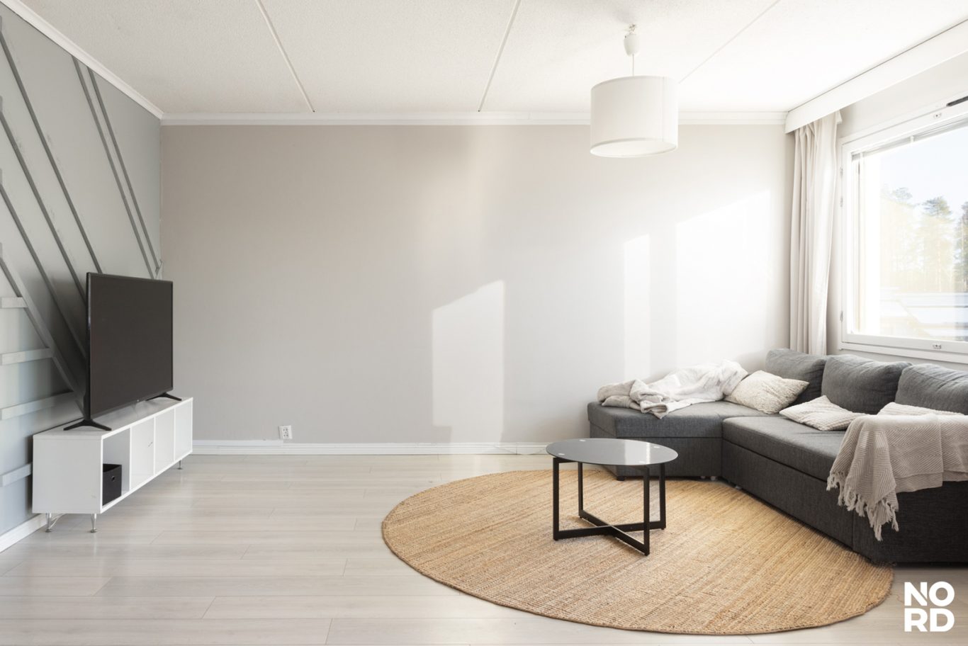Tervetuloa tutustumaan tähän rivitalokotiin Tuusulan Riihikalliossa! Asunto sijaitsee rinteessä, mikä tuo yläkerran keittiöön ja olohuoneeseen avarat näkymät. Avoin pohjaratkaisu yläkerrassa tekee tilasta valoisan ja avaran, ja koko asunnon leveydeltä olevat ikkunat tuovat sisälle runsaasti luonnonvaloa.