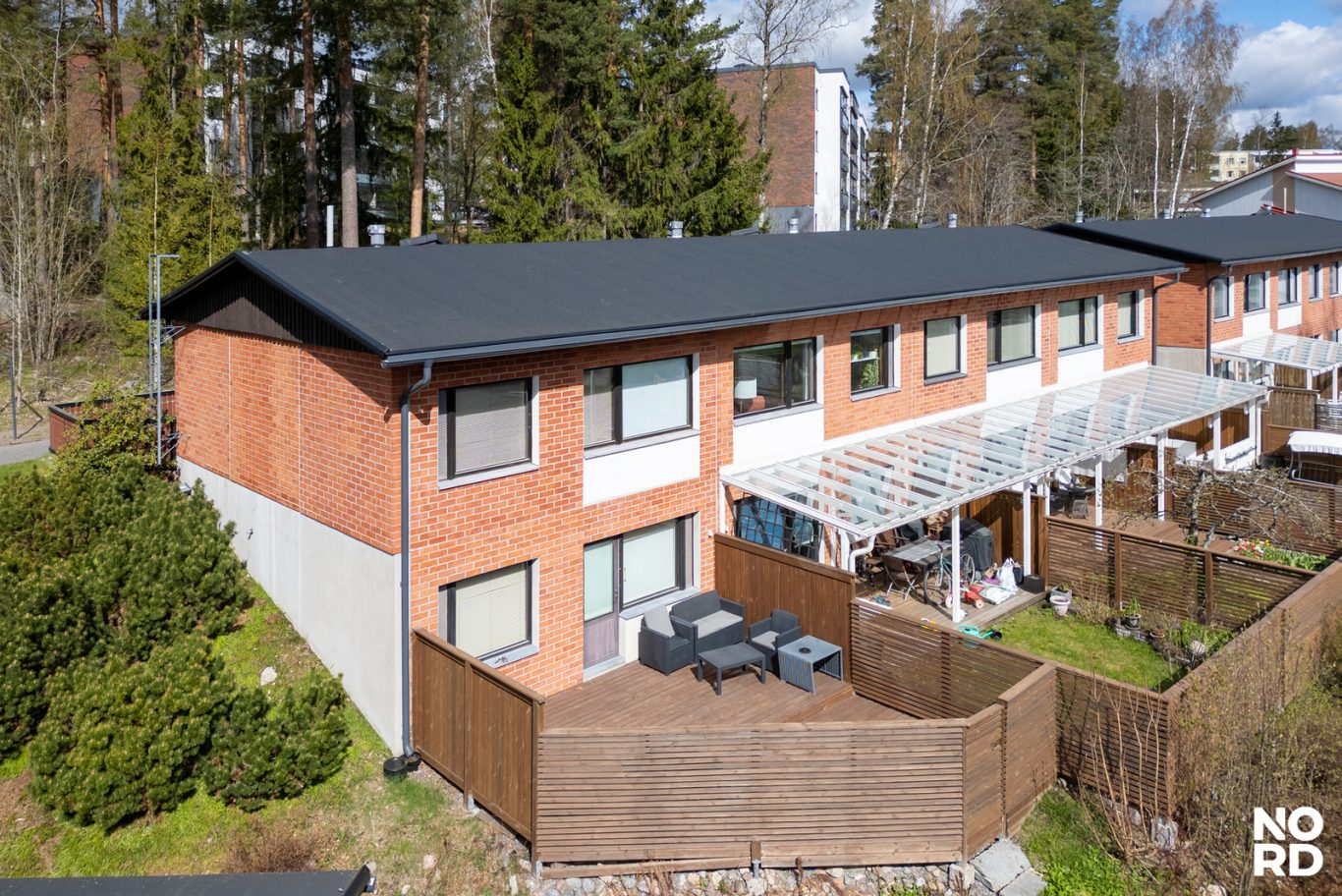 Huoneistolla on terassialue sisääntulon yhteydessä sekä päämakuuhuoneesta on käynti aidatulle piha-alueelle, joka on tällä hetkellä katettu terassilaudoituksella kokonaisuudessaan.