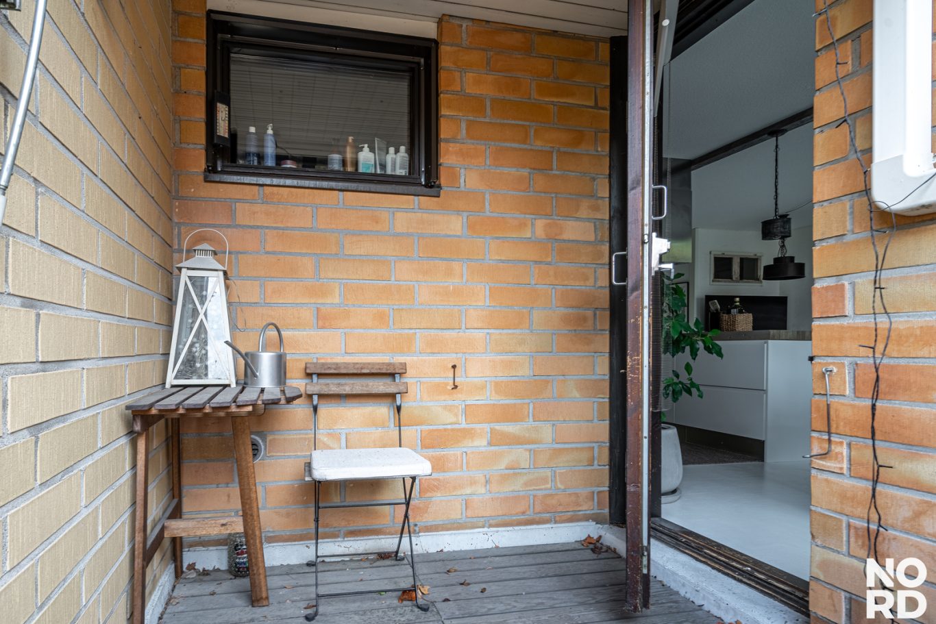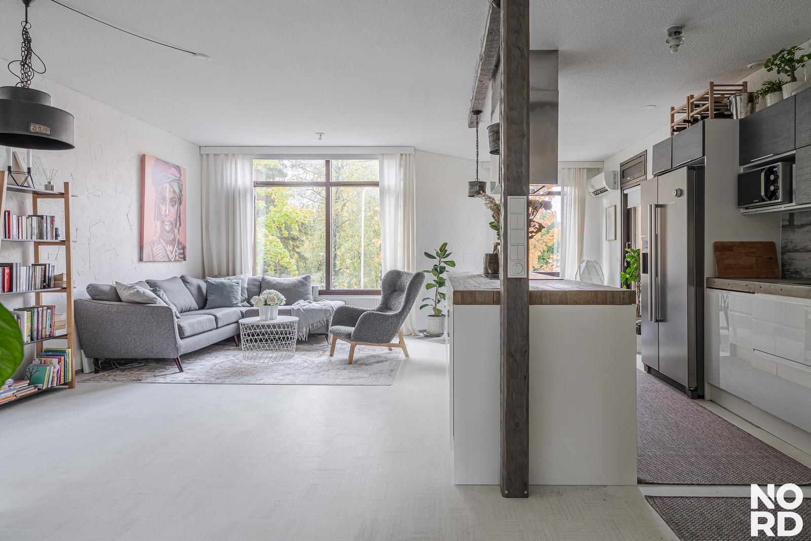 Asunnon isoista Ikkunoista on ilo seurata vuodenaikojen vaihtelua ja omalla pihalla voit nauttia kesäpäivistä muiden katseilta suojassa. Sijainti on keskeinen, mutta kuitenkin samalla yksityinen. Asunnossa on lisäksi kaksi makuuhuonetta, oma sauna, tilava kylpyhuone ja erillinen wc. Kaikki asunnon toiminnot sijaitsevat yhdessä tasossa.