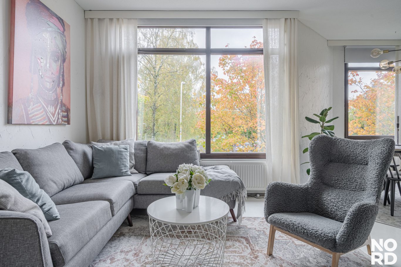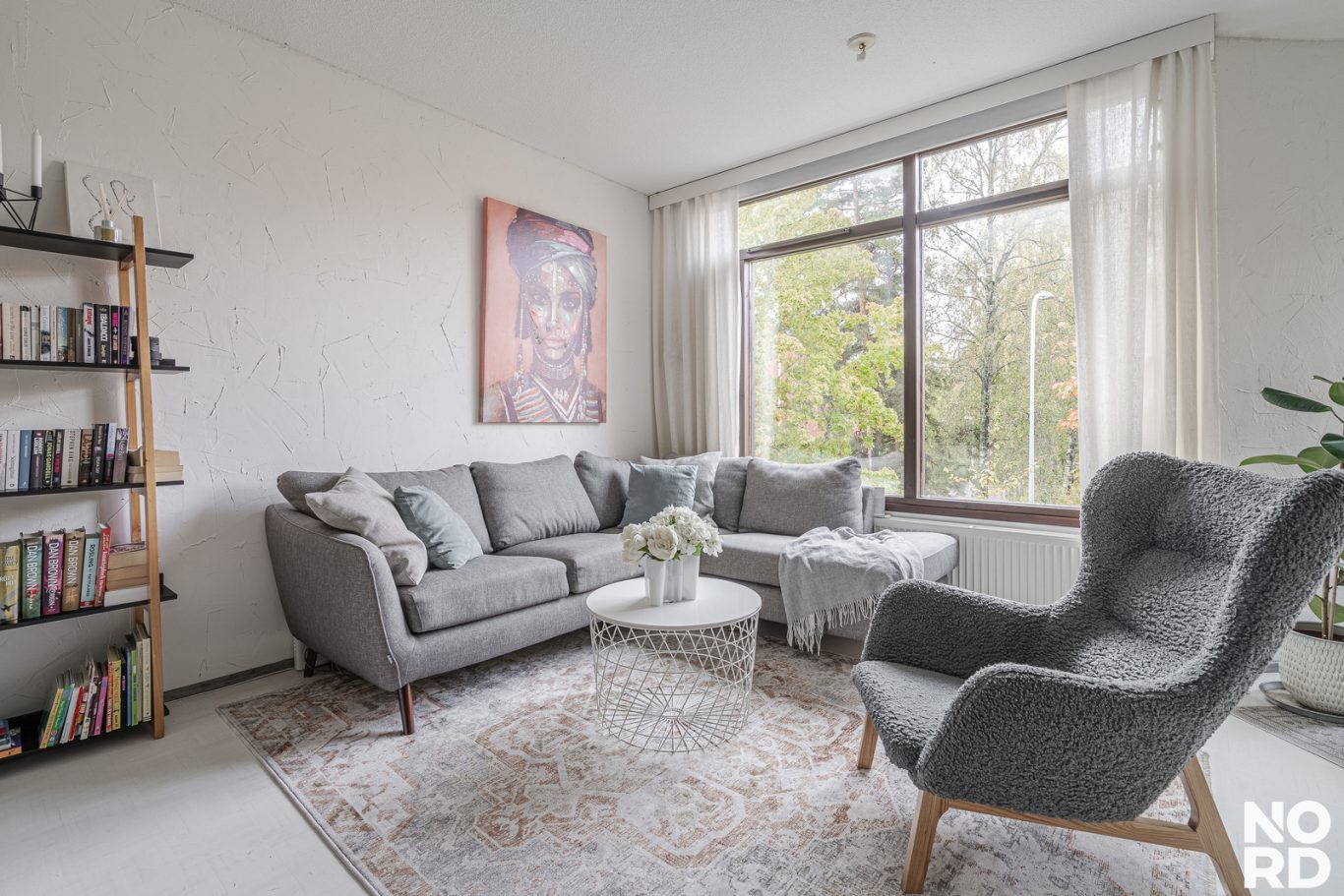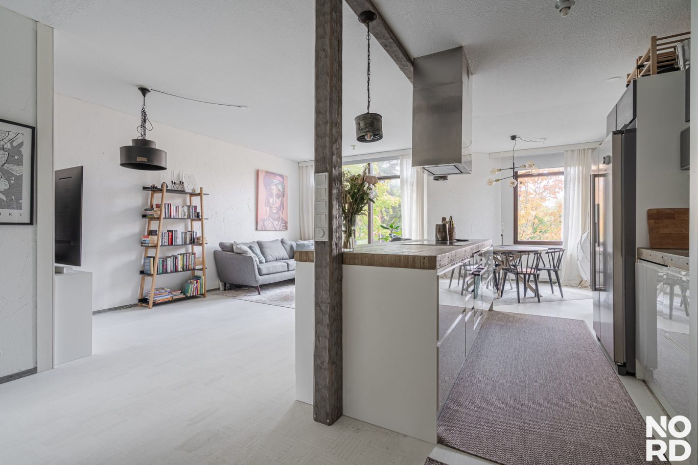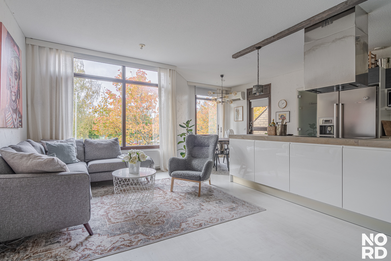 Asunnon isoista Ikkunoista on ilo seurata vuodenaikojen vaihtelua ja omalla pihalla voit nauttia kesäpäivistä muiden katseilta suojassa. Asunnossa on lisäksi kaksi makuuhuonetta, oma sauna, tilava kylpyhuone ja erillinen wc. Kaikki asunnon toiminnot sijaitsevat yhdessä tasossa.