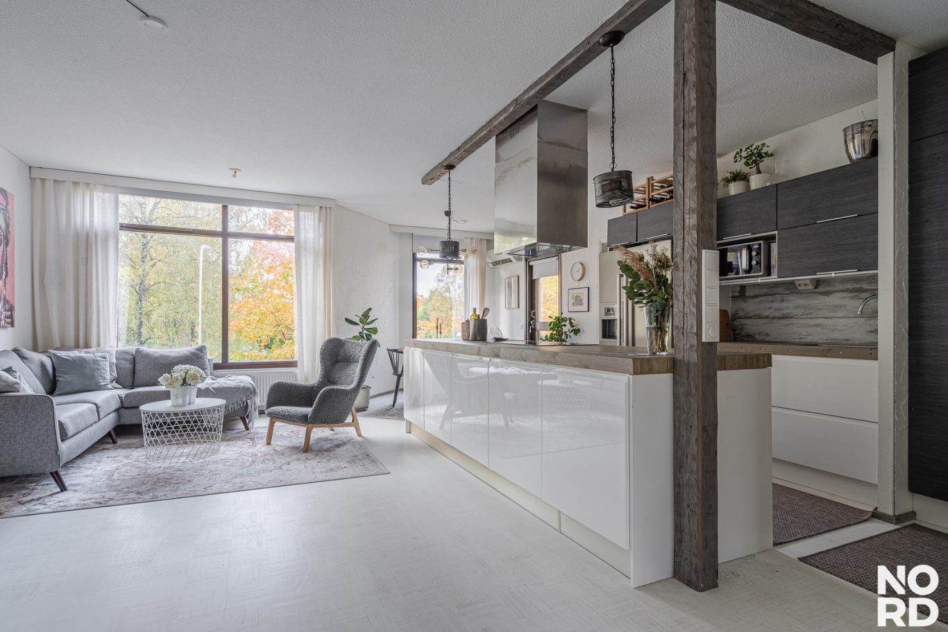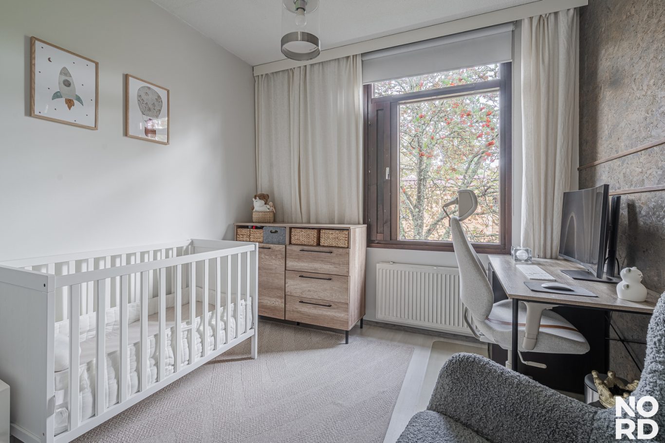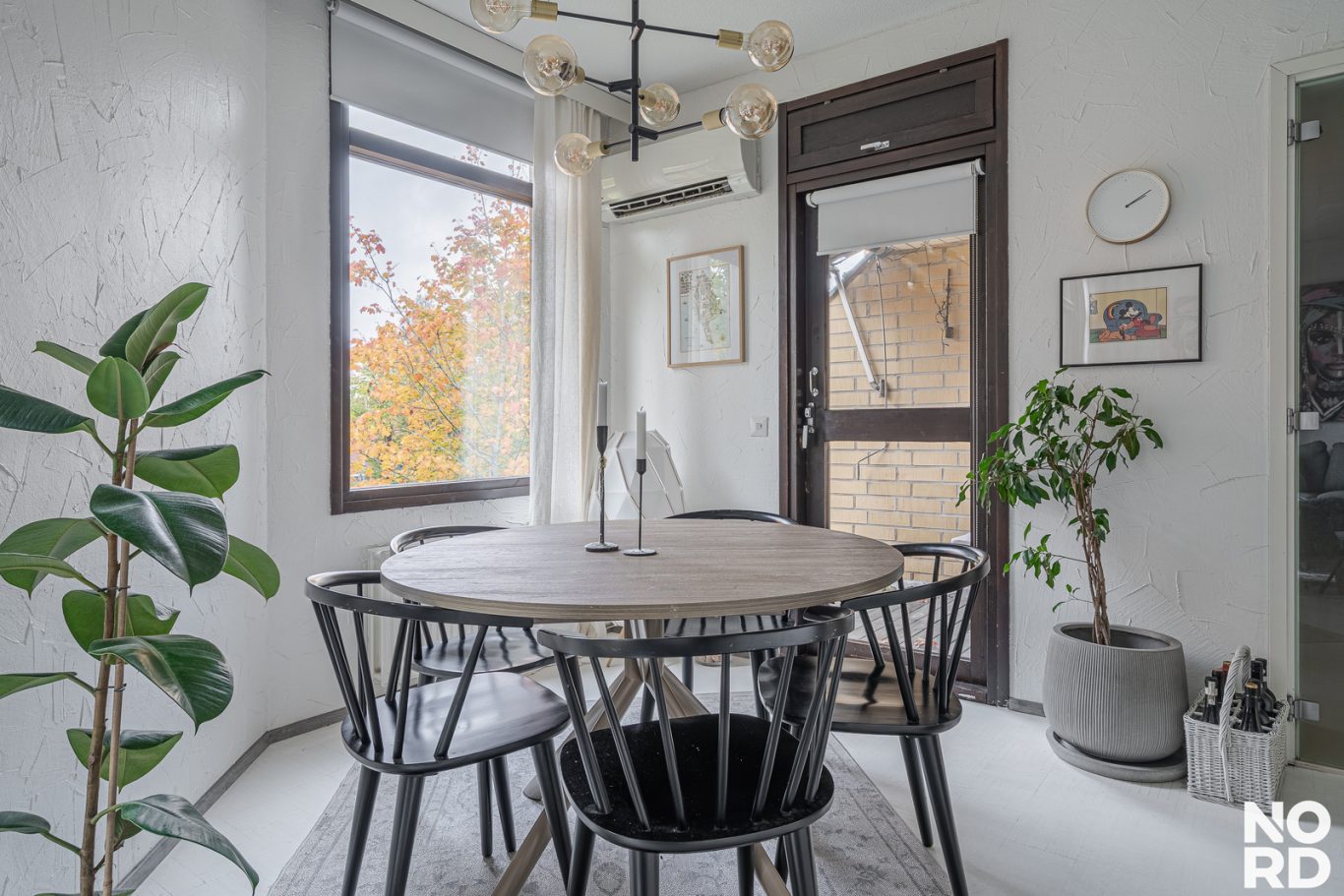 Asunnon isoista Ikkunoista on ilo seurata vuodenaikojen vaihtelua ja omalla pihalla voit nauttia kesäpäivistä muiden katseilta suojassa. Asunnossa on lisäksi kaksi makuuhuonetta, oma sauna, tilava kylpyhuone ja erillinen wc. Kaikki asunnon toiminnot sijaitsevat yhdessä tasossa.