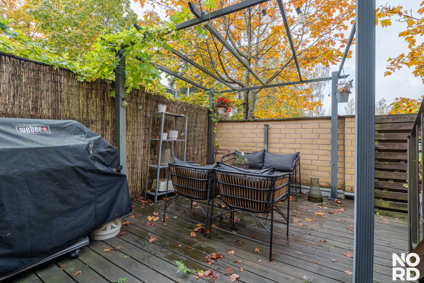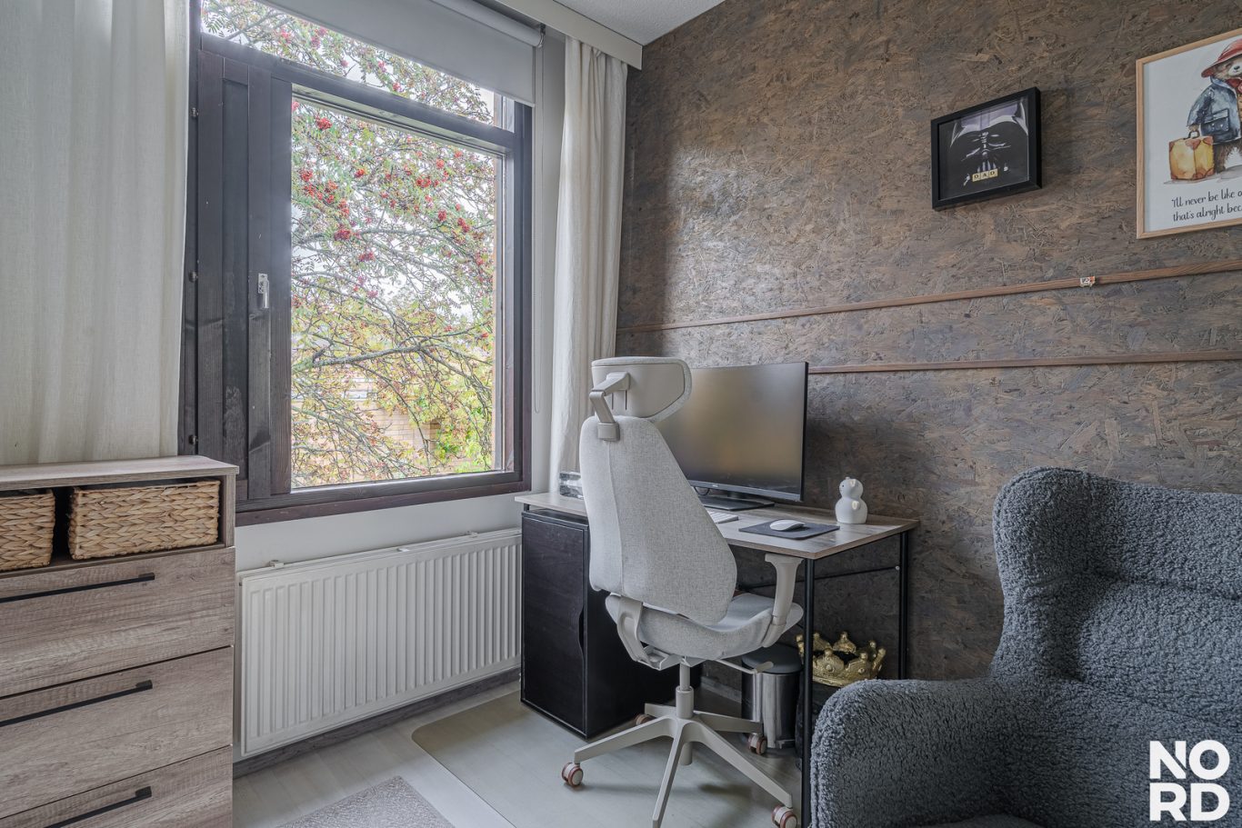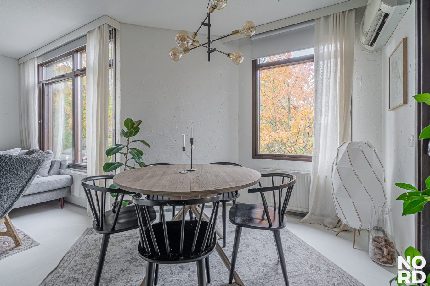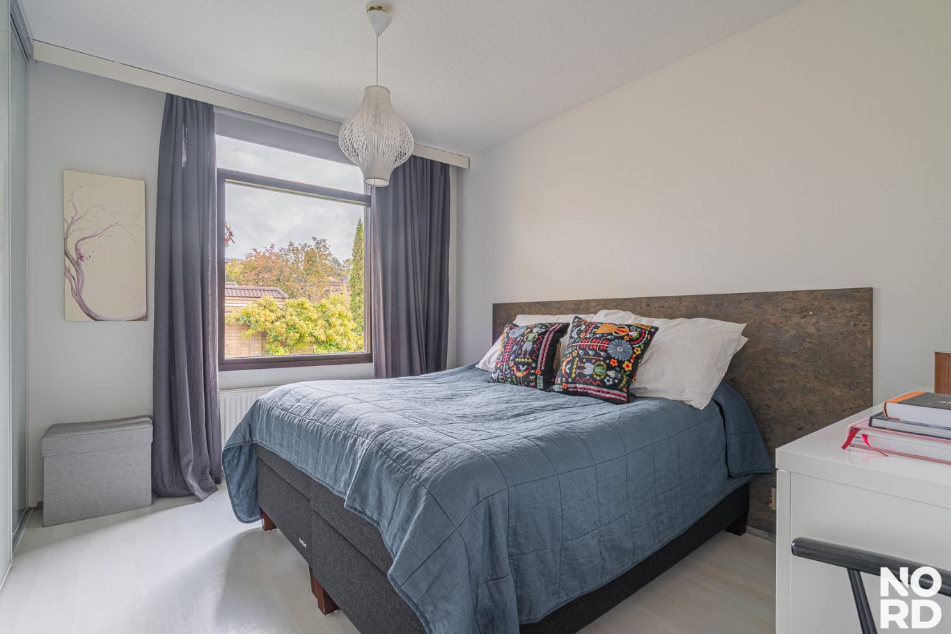 Asunnon isoista Ikkunoista on ilo seurata vuodenaikojen vaihtelua ja omalla pihalla voit nauttia kesäpäivistä muiden katseilta suojassa. Asunnossa on lisäksi kaksi makuuhuonetta, oma sauna, tilava kylpyhuone ja erillinen wc. Kaikki asunnon toiminnot sijaitsevat yhdessä tasossa.