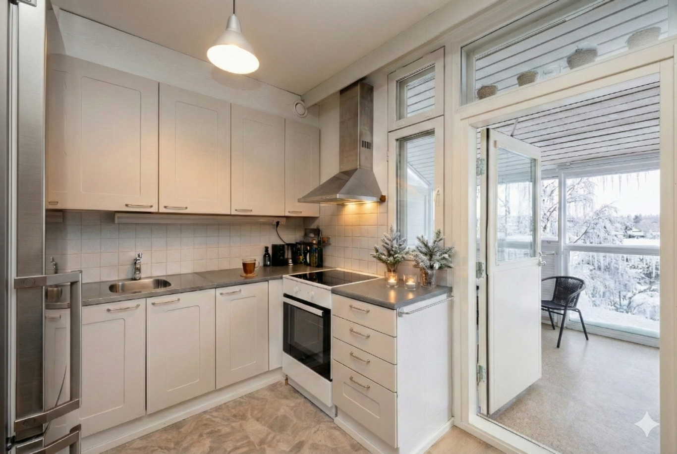 | Parveke | Asunnossa on parveke |