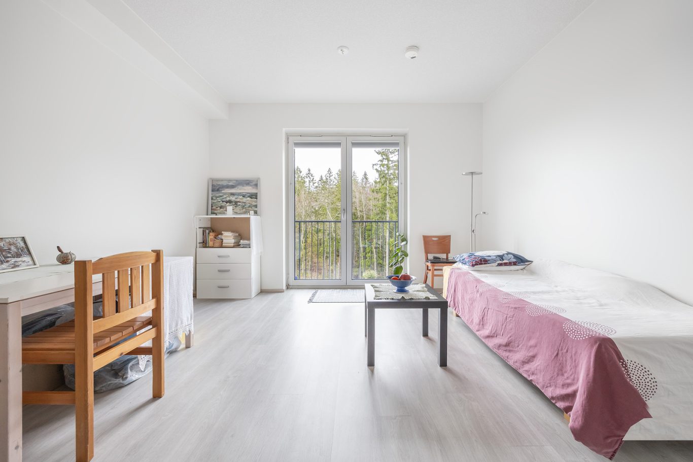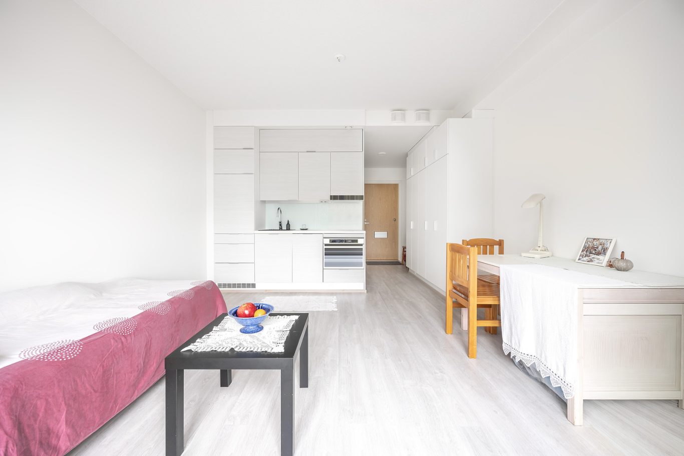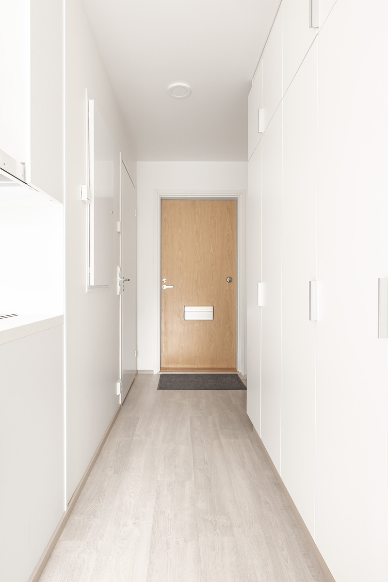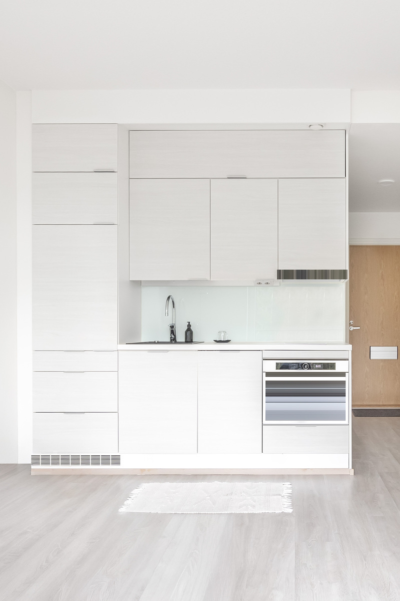 Tehokkaassa pohjaratkaisussa on olohuone avokeittiöllä. Kaunis vaaleasävyinen huoneisto. Valkoinen keittiö integroiduin kodinkonein. Ranskalainen parveke tuplalasiovilla. Hyvänkokoinen kylpyhuone, paikka pesutornille. Komerotilaa. Vesikiertoinen lattialämmitys.