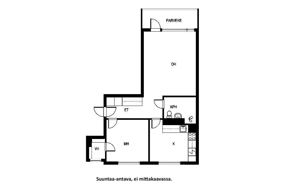 | Huoneistoselitelmä | 2h+kt+kph+vh+et+parveke |