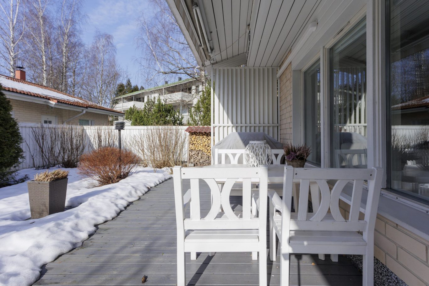 Kodin kruunaa suojaisa ja vehreä piha, joka tarjoaa viihtyisän ulkotilan oleskeluun ja vapaa-aikaan. Arkea helpottavat lämmin ja kylmä ulkovarasto, sekä autopaikat kahdelle autolle. Toinen katoksessa ja toinen avoimella paikalla. Sähköauton latauspisteellä varustettuna. Kokonaisuuden viimeistelee hyvin hoidettu yhtiö.
