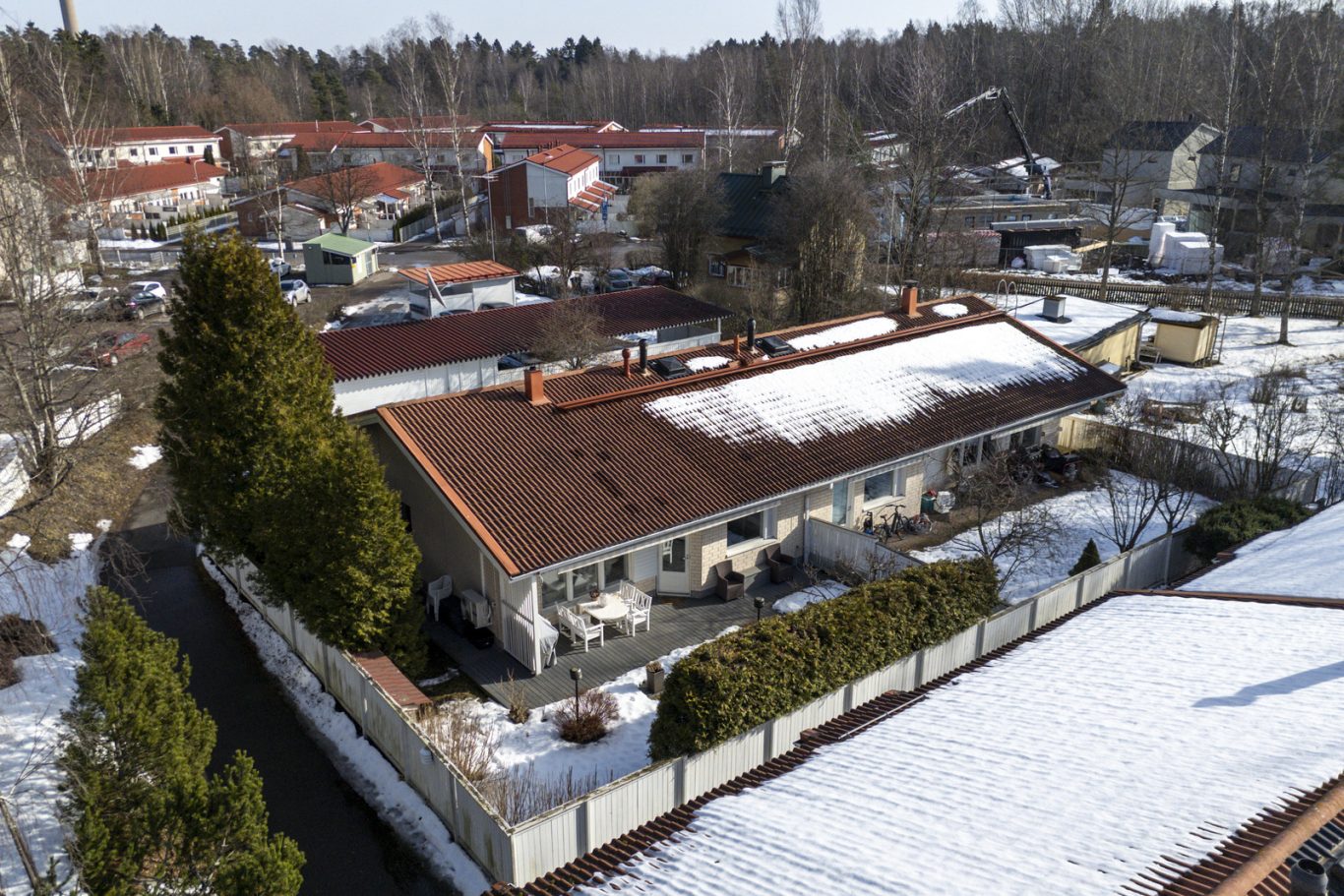 | (Taloyhtiön) Rakennukseen tehdyt korjaukset ja remontit | 2025: Ilmanvaihtokanavien puhdistus ja huolto 2024: Valokuituliittymä kaikkiin huoneistoihin, aitarakenteiden uusimisia, jalankulkuväylän kivityksen korjaus, lukko- ja vesikalustekorjauksia 2023: Huoneistot A1, B3, B4 ja C5. Lattian ja seinän rajan tiivistyskorjaus, sähkörasioiden liitoskohtien tiivistys, ikkunoiden ja seinän saumojen tiivistys, radonmittauksia, A1:n suihkusekoittaja, A2:n suihkuhanan säätöosa 2022: Sähköautojen latauspisteet, sokkelien porareikämittaukset, mikrobinäytteet, korvausilmaventtiilit kaikkiin huoneistoihin, elementtisaumojen uusiminen, salaojien pesu, A-taloon radonimuri, B3:n lämminvesivaraaja, tiivistyskorjauksia useissa huoneistoissa 2021: Kattoturva- ja sadevesijärjestelyjen parannukset, kattotiilien vaihto, sähkökeskusten lämpökuvaus ja huolto, lämmittimien uusimisia, A2:n sisäilmatarkastus ja -tutkimus 2020: Julkisivun puuosien ja räystäänalusten huoltomaalaus, asfaltin paikkakorjaukset, B4:n lattialämmityksen korjaus, antennikeskuksen uudelleenohjelmointi 2019: Vesikattojen kulkusillat, radonmittaukset, energiatodistus, salaojien huolto ja kuvaus, aitojen maalaus ja paikkakorjaukset, vesikaton läpivientien korjaukset A-talossa 2018: Radonmittaus kaikissa huoneistoissa, maadoitusjärjestelmän päivitys, kiinteistön kuntoselvitys, ilmanvaihdon puhdistus ja huolto, piharakennusten huoltomaalaus 2017: Lämmittimien uusimisia, A2:n vesihanat ja suihkusekoittaja, aitojen paikkakorjaukset, autolämmitystolpan korjaus, salaojakaivon kannen uusiminen 2016: Antennijärjestelmän ohjelmointi taajuusmuutoksen vuoksi 2015: A1:n märkätilaremontti, A1:n lämminvesivaraaja, piha-alueiden kiveys- ja asfalttikorjaukset, autokatoksen, ulkovaraston ja roskakatoksen huoltomaalaus 2014: Lämmittimien uusimisia, sähkökaapin vikavirtasuojauksen korjaus, autokatoksen liikeilmaisin, B3:n ja C5:n märkätilaremontit 2013: A2:n pesuhuone-, sauna- ja kodinhoitohuoneremontti, A1- ja A2-varastojen ovet, C5:n lämminvesivaraaja, tiilikattojen pesu ja suojakäsittely, kattotiilien vaihto, ikkunapokien huoltomaalaus 2012: Päätyaitojen uusiminen, piha-aitojen maalaus, salaoja- ja rännikaivokorjauksia 2011: Ilmanvaihtokanavien puhdistus ja huolto, lämmittimien uusimisia, vesikalusteiden korjauksia 2009: Rikkinäisten kattotiilien vaihto, A1:n huippuimurin moottori, piharakennusten puuosien huoltomaalaus 2008: A2:n ja B3:n lämminvesivaraajat 2007: Tontin raja-aidat ja huoneistojen piha-aidat maalaus, A2:n ja C5:n lämminvesivaraajien sähkövastukset 2006: Jätekatoksen lukittava ovi, A2:n lämminvesivaraajan varoventtiili, B4:n lämminvesivaraaja 2005: Antennijärjestelmän huolto, B4:n lämminvesivaraajan sähkövastus, raja-aita naapuritontin suuntaan 2003: Antennijärjestelmän digivahvistin 2001: Parkkipaikkojen ja kulkuväylien asfaltointi- ja pihakivitykset Kattava lista saatavissa välittäjältä |