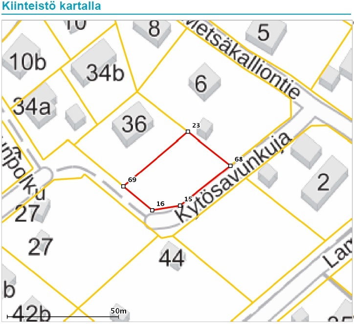 | Lisätietoja rakennusoikeudesta | Kaavanmukainen rakennusoikeus noin 170m². Tonteille saa kaavassa sallitun rakennusoikeuden lisäksi rakentaa autokatoksia tai -talleja kaavan mukaiselle autopaikkamäärälle. |