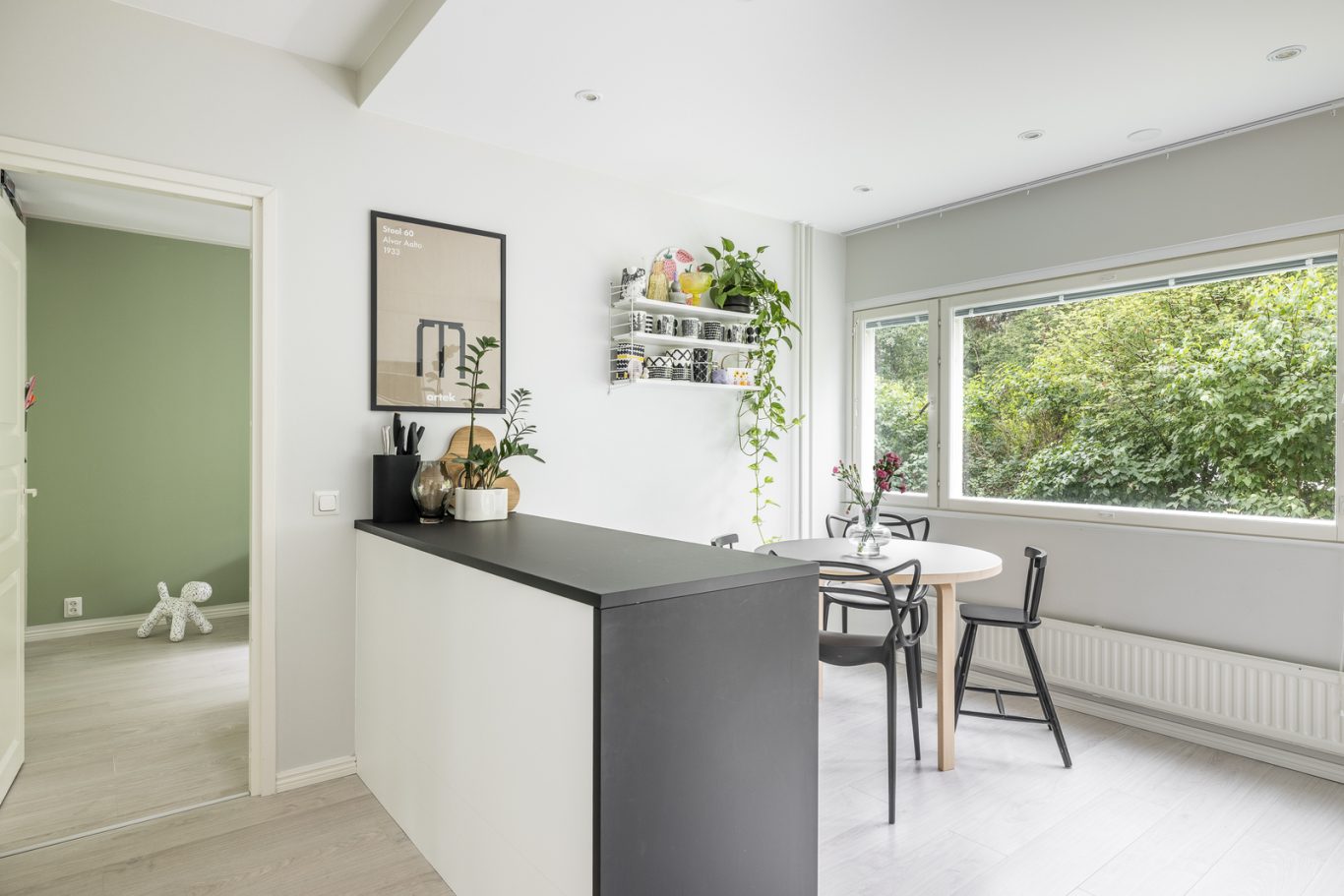 Asunnon tilava olohuone kutsuu rentoutumaan, ja erillinen hyvin varustettu avoin keittiö antaa tilaa sekä kokkailulle että yhdessäololle. Kaksi makuuhuonetta ovat juuri sopivan kokoisia ja molemmissa on mukavasti säilytystilaa. Hyväkuntoinen kylpyhuone palvelee arkea vaivattomasti, ja tyylikkäät kaapistot jakavat tilat saumattomasti eteisen ja olohuoneen välillä. Parveke vehreän pihan suuntaan on puolestaan kodin oma kesäolohuone.