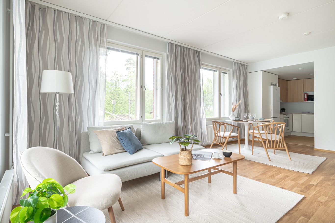 Asuntojen kokojakauma on laaja, ja kaikki asunnot ovat toimivia. Suurimmat asunnot avautuvat kahteen tai kolmeen ilmansuuntaan. Lähes jokaisella asunnolla on oma parveke tai terassi, ja muutamalla asunnolla on ranskalainen parveke. Isoimmissa asunnoissa on pääsääntöisesti oma sauna. Suurin osa parvekkeista ja terasseista on suunnattu länteen tai etelään. Kodeista löytyy modernit neutraalit materiaalit. Hintaan sisältyviä tyylisuuntia on useita, joista voit valita itsellesi sopivimman.