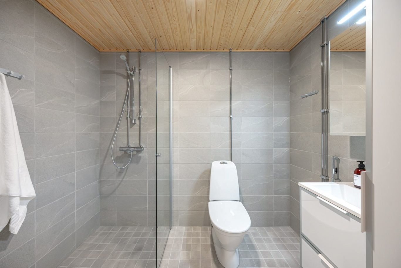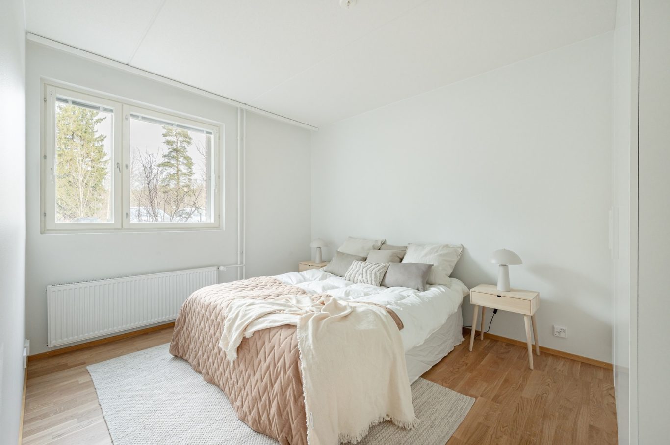 | Tilojen kuvaus | Makuuhuoneiden komeroissa on hyllyt ja vaatetangot. Eteisessä on liukuovikomero peiliovilla (kirkas kuvastin). Siivouskomero on eteisessä tai keittiössä, pyykkikomero eteisessä tai pesuhuoneessa pohjapiirustuksen mukaan. |