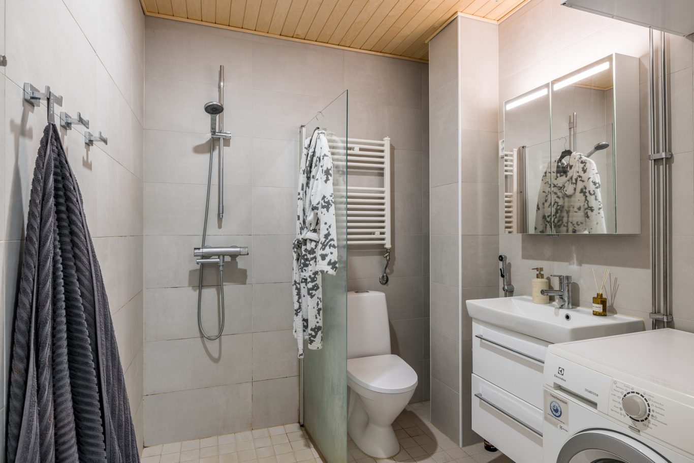 Ylellistä tunnelmaa tähän kotiin tuovat laadukkaat parkettilattiat ja upea kylpyhuone. Näyttävä ja laadukas keittiö integroiduilla kodinkoneilla tuo arkeen luksusta. Tilavassa ja viihtyisässä olohuoneen ja avokeittiön yhdistelmässä on mukavasti tilaa viihtymiseen ja sieltä on myös käynti omalle sisäpihan suuntaan aukeavalle asuntopihalle!