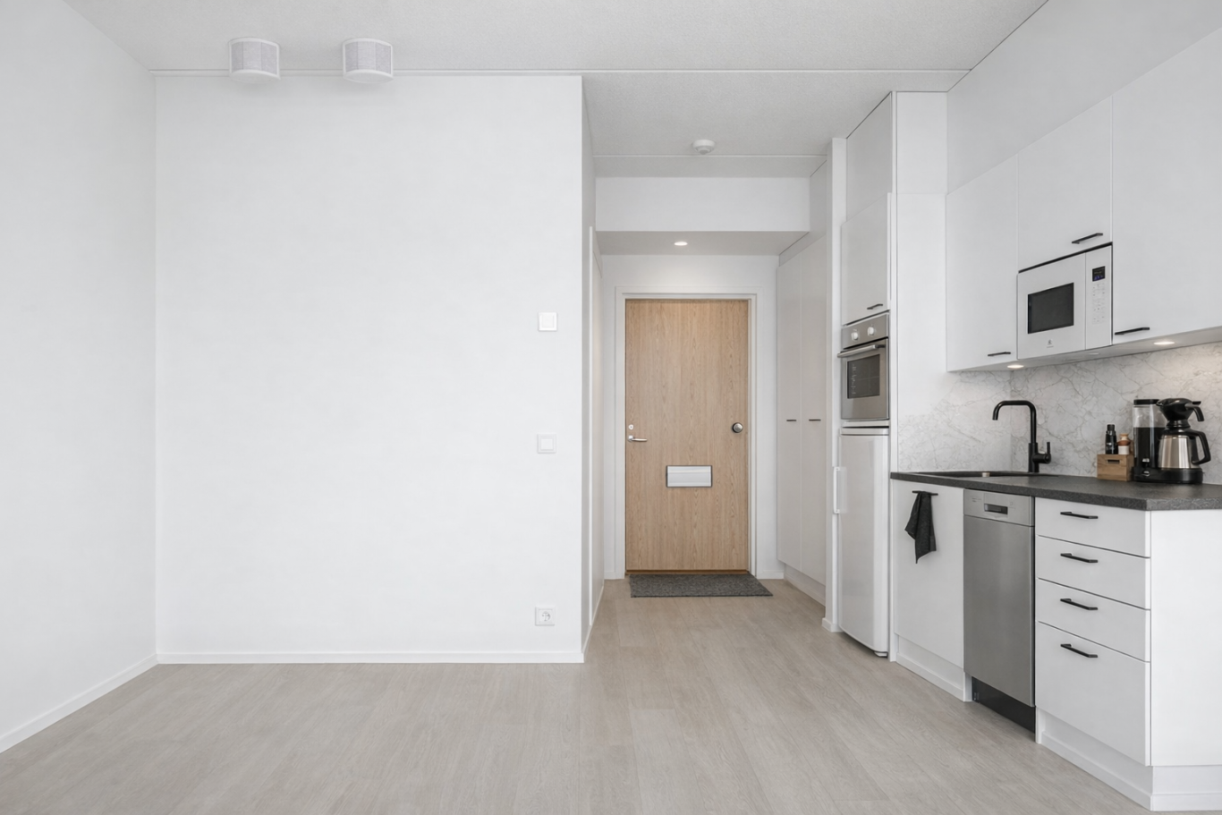 Ihana yksiö on uutta vastaavassa kunnossa ja tarjoaa laadukkaat, ajattomat materiaalit. Korkea huonekorkeus, koko asunnon kattava miellyttävä lattialämmitys sekä lattiasta kattoon ulottuvat ikkunat tekevät asunnosta poikkeuksellisen valoisan ja avaran.