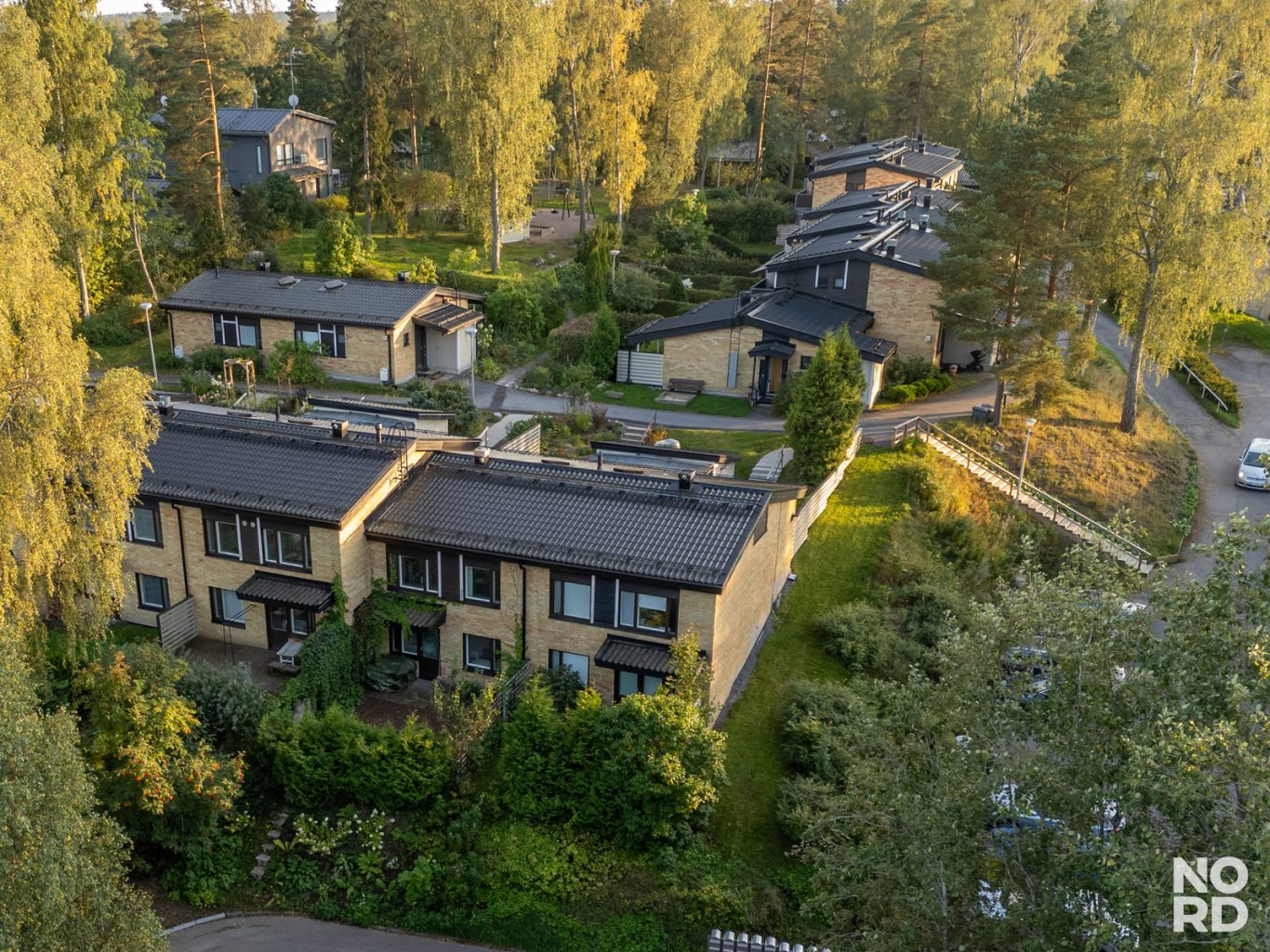 | (Taloyhtiön) Rakennukseen tehdyt korjaukset ja remontit | 1998 Kiinteistön kuntoarvio ja korjausohjelma, 2003 Rakennuksen kuntoarvio, rakennustekniikka, 2004 Antenniverkoston kunnostaminen, 2006 Kaukolämpölaitteiden (siirtimet ja ohjauskeskus) uusinta, 2008 Patteriventtiilien perussäätö ja termostaattiventtiilien asennustyö, 2010-2011 Kaikkien rakennusten ja autokatoksen vesikattojen uusiminen peltikatteeksi, 2011 D-talon salaojaputkien, sadevesiviemäröinnin ja maapinnan kaatojen korjaustyöt, 2012 Kylpyhuoneen vesivaurioiden korjauksia, 2012-2013 Asuntojen vesikattojen uusimisen vuositakuukorjauksia, 2014 Kylpyhuoneiden kuntotutkimukset, 2014 P-alueen asfaltoinnin paikkakorjaustyöt, IV-kanavien puhdistus- ja säätötyöt, 2015-2017 Kylpyhuoneiden korjaustöiden aloitus, 2016 Leikkialueen kunnostustyöt, 2016-2017 F-talon edustan pintaosien ja salaojajärjestelmän peruskorjauksen suunnittelu, 2019 LVIS- ja rakennustekninen kuntokartoitus, 2019 Aitojen ja varastorakennusten ja muiden puuosien maalaus, 2019 Ulko-ovien ja ikkunoiden uusiminen, lukituksen uusiminen, 2019-2020 F-talon edustan pintaosien ja salaojajärjestelmän peruskorjauksen, 2020-2021 Radonmittaukset jokaisen rakennuksen yhdessä asunnossa, 2020-2021 Talojen välissä kulkevien putkien uusimisen suunnittelu, 2021 Kosteusmittaukset niissä asunnoissa, joissa on maan alla huoneita, 2021-2022 Radonmittaukset jokaisessa asunnossa, 2022 Rakennusten ulkopuolella olevien putkien uusimistyöt, 2022 Radonkorjausten suunnittelu ja toteutus, 2022 Alakerran seinän korjaus asuntojen ulkopuolella neljässä B-talon asunnossa, 2022-2023 Kahden F-talon asunnon maanpinnan alentamisen ja sadevesiviemäröinnin koekorjaus, 2023 F-talon asuntojen (4kpl) maanpinnan alentaminen ja sadevesiviemäröinnin uusimistyöt, 2023 Radonkorjausten jatkaminen yhdessä F-talon asunnossa. Tässä on mahdollisesti vain osa remonteista, tarkemmat tiedot yhtiön asiakirjoista, jotka saatavilla välittäjältä. |