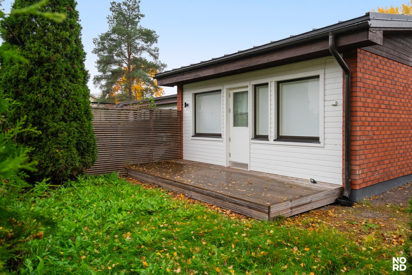 | Tehdyt korjaukset | Vuonna 2022 Ikkunoiden ja vesipeltien uusinta Korvausilmaventtiilit ja poistopuhallin asennettu Ulko-ovien uusinta Lukoston uusinta-Abloy Easy Väliovien uusinta Lattiapintojen uusinta ja listoitus Sähkökalusteiden uusinta Keittiön uusiminen kodinkoneineen Salaojat uusittu ja patolevyt sekä eristeet asennettu Tonttivesijohto, sekä tonttiviemärit uusittu kaupungin verkostoon Lisätty varaus sähköauton lataukselle etupihalle Sokkelin pinnoitus Vesijohtojen uusinta ja huoneistokohtaisen vesimittarin asennus Lämmitysjärjestelmä vaihdettu öljylämmityksestä vesi-ilmalämpöpumppuun (Viessman) WC/suihkuhuone uusittu kokonaan ja asennettu lattialämmitys Vesikalusteet uusittu Antenni uusittu Vesikatto ja aluskate uusittu Julkisivu uusittu ja asennettu tuulileijona eristelevy parantamaan tiiveyttä ja eristävyyttä Sähkön sulakekeskus uusittu Patterit huollettu ja termostaatit uusittu Terassi ja väliaita rakennettu uudelleen Sisäseinät tasoitettu ja maalattu Pihan pinnat uusittu |
