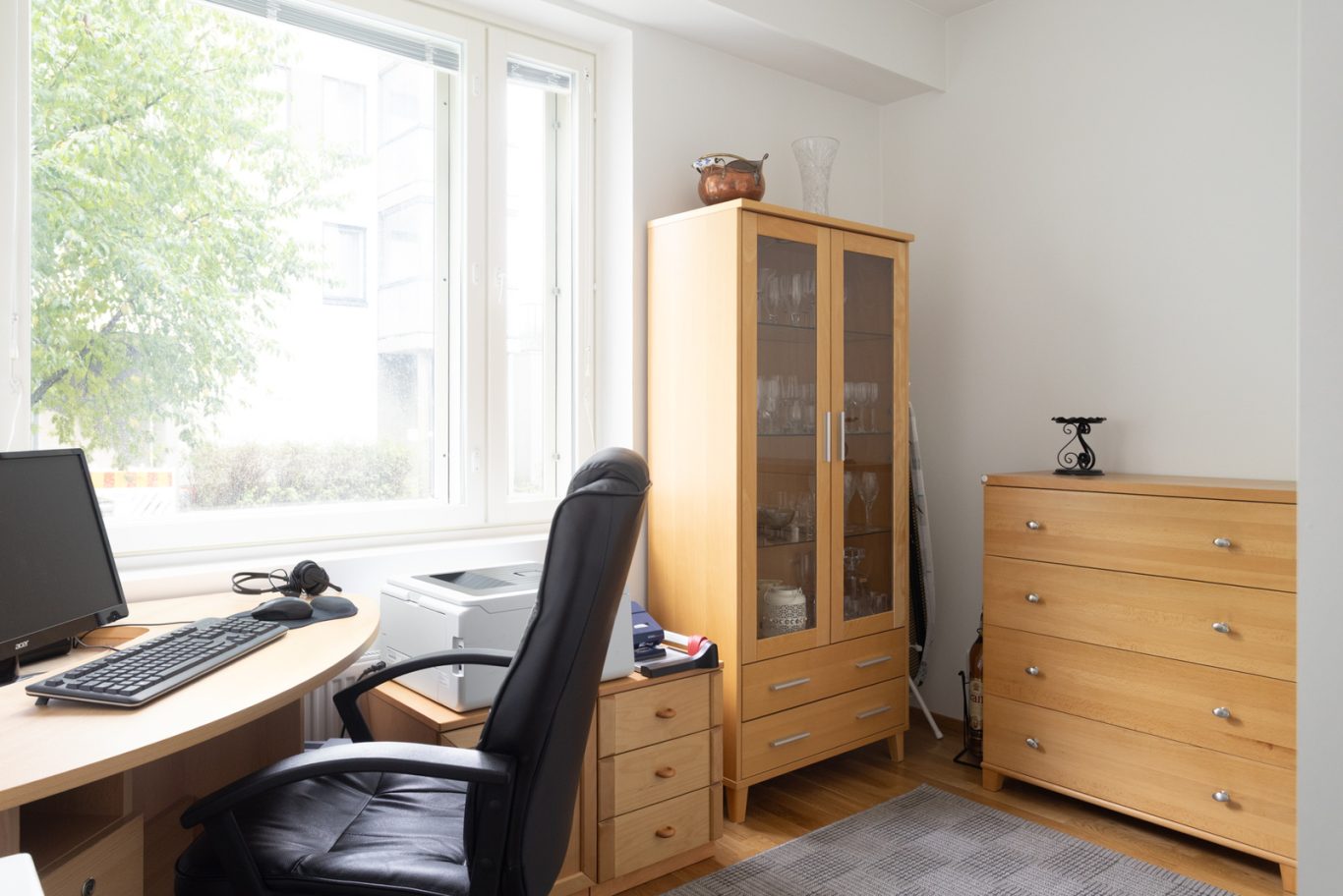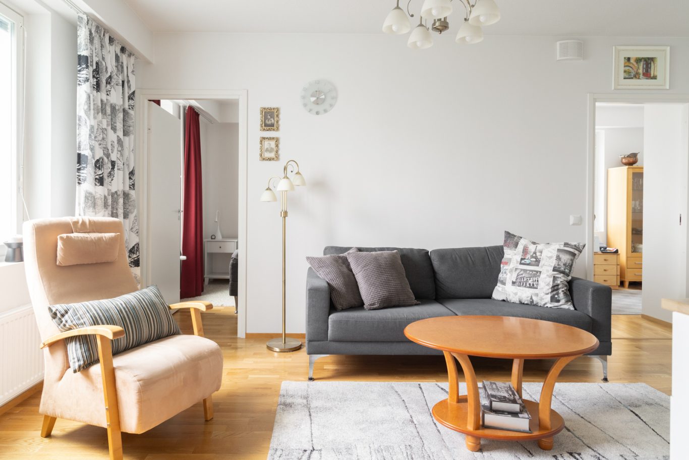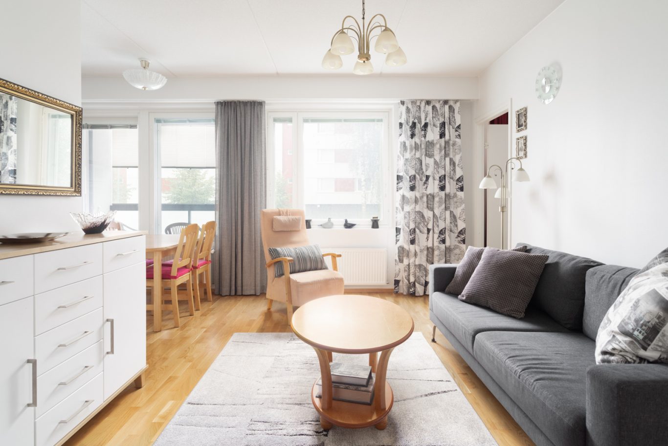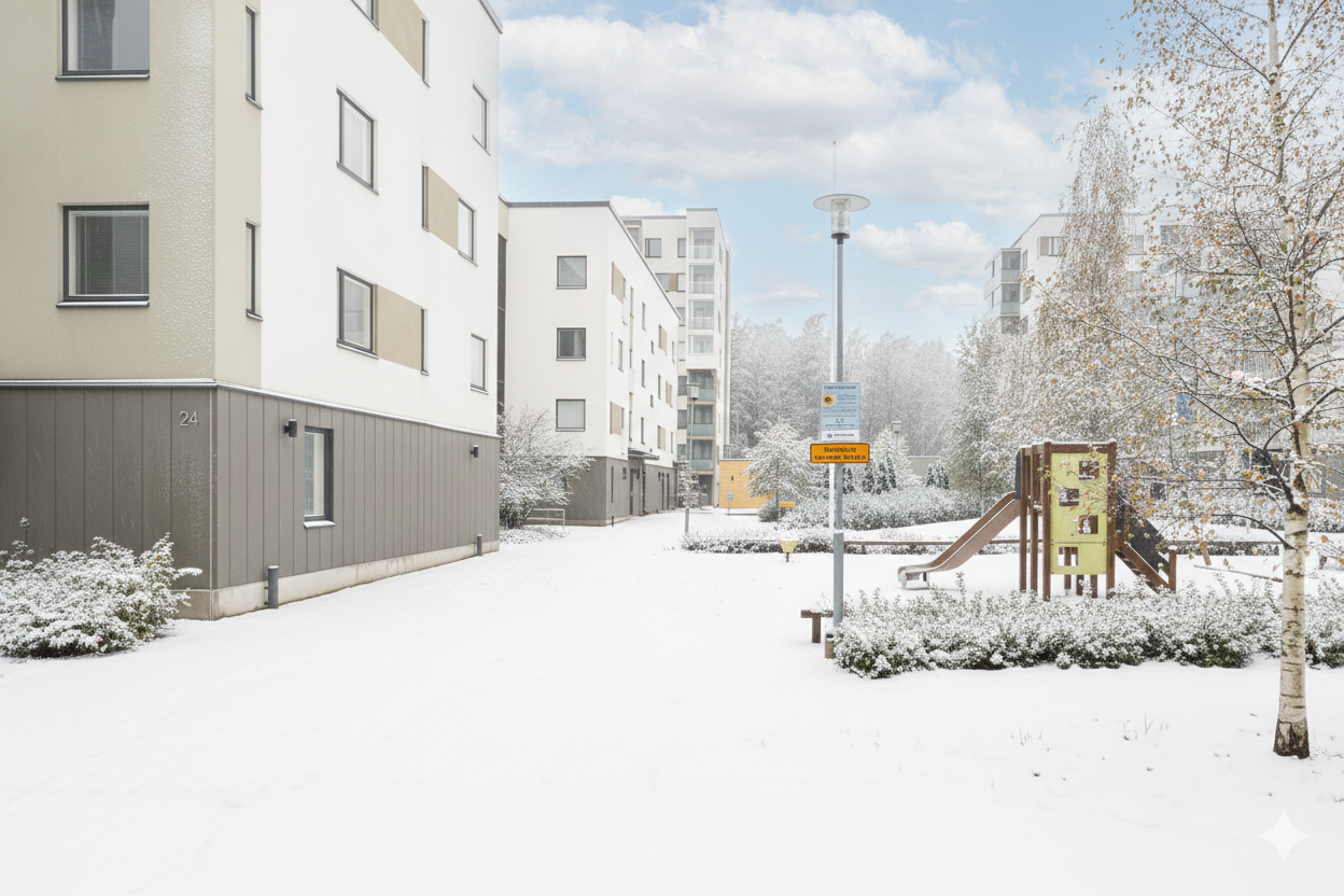 Asunnon sydän on valoisa olohuone ja toimiva keittiö, josta on käynti lasitetulle parvekkeelle. Parvekkeelta avautuu viihtyisä näkymä taloyhtiön suojaiselle sisäpihalle. Oma sauna tuo arkeen ripauksen luksusta, ja modernit materiaalit takaavat asumismukavuuden ilman remonttihuolia.