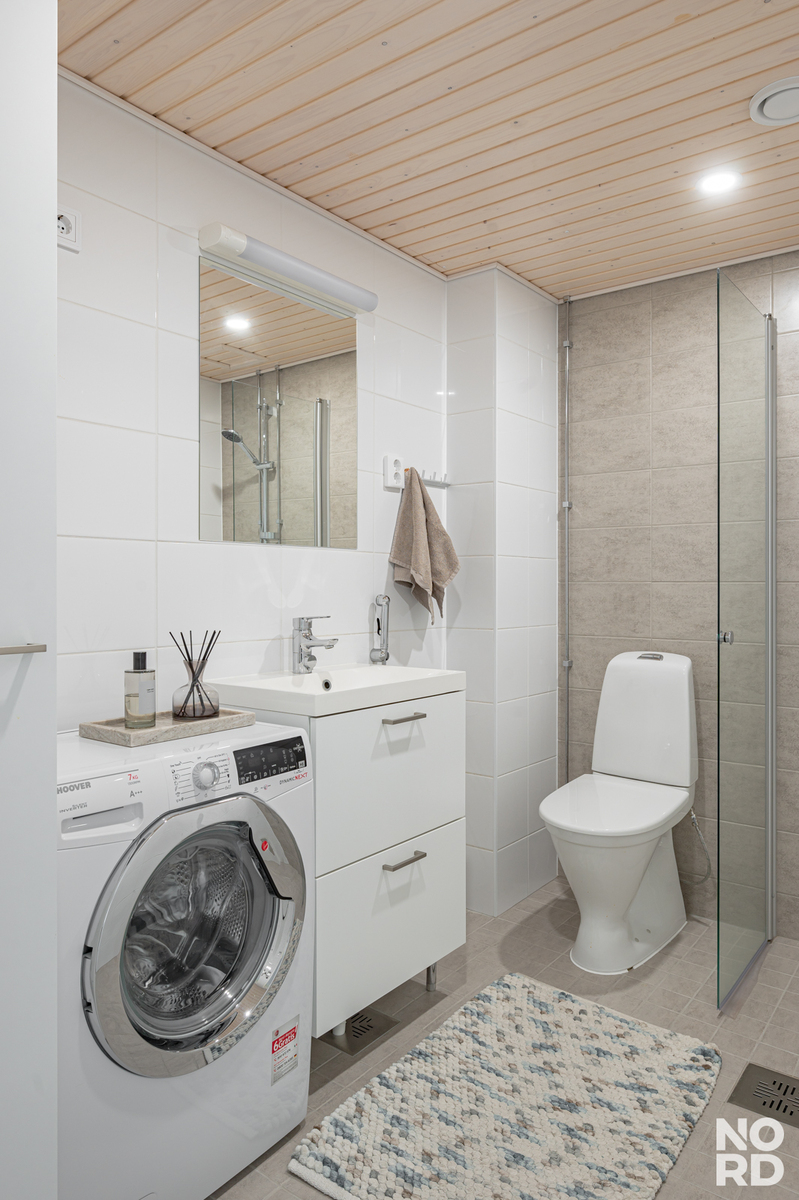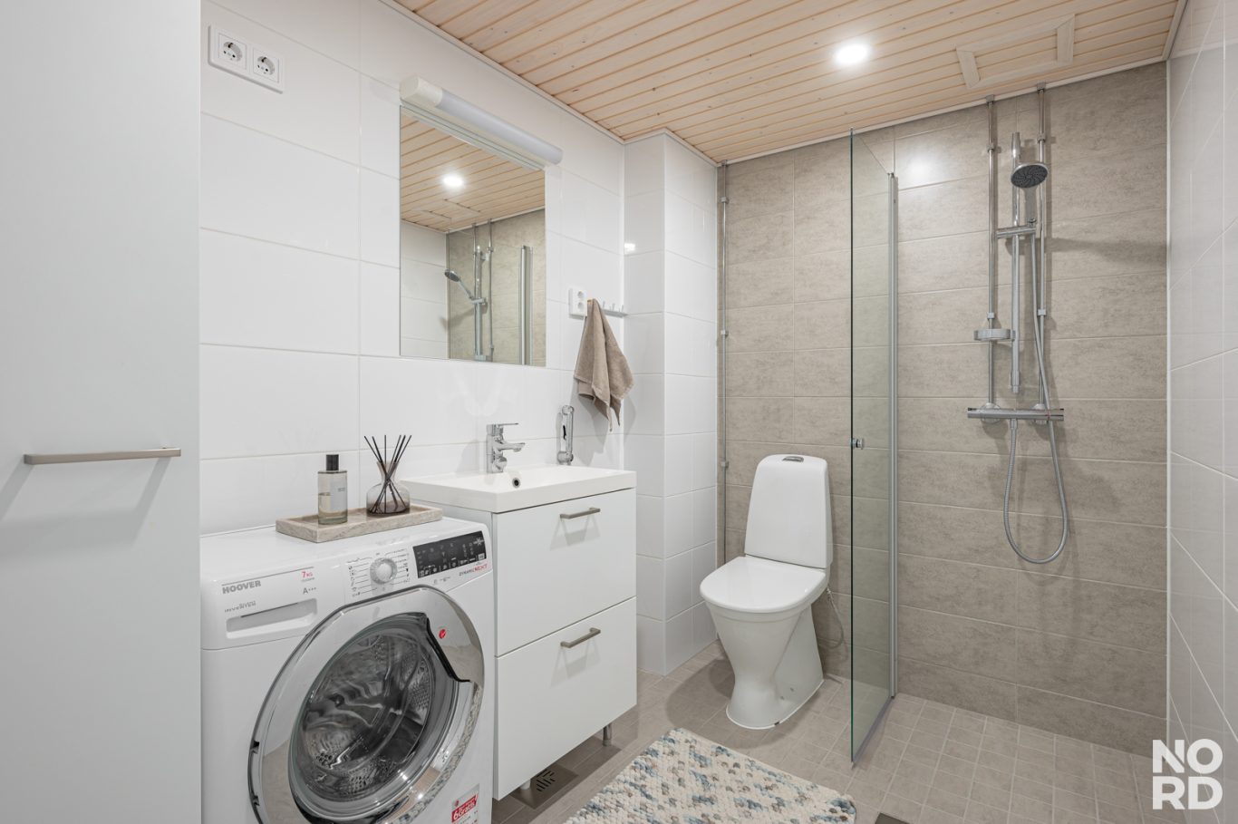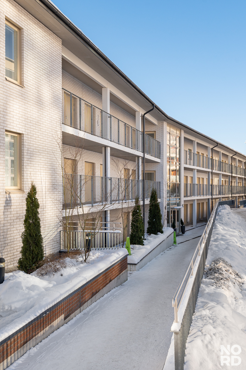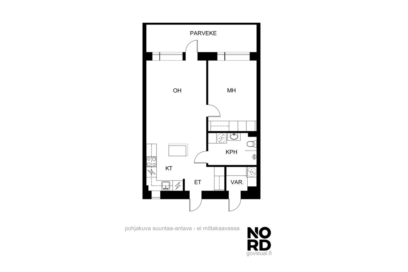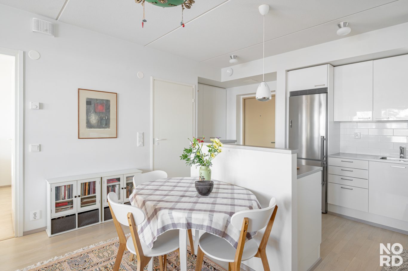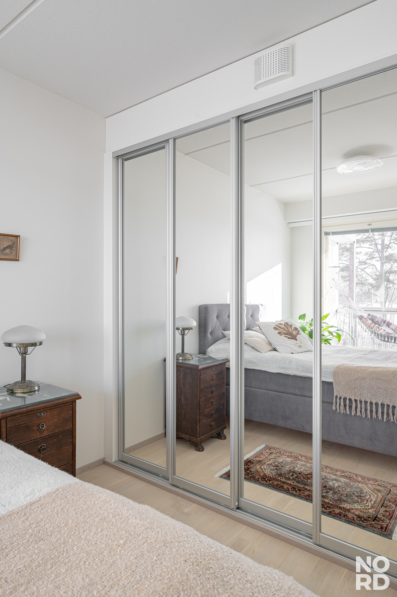 Kaunis ja hyvin pidetty läpitalon kaksio. Olohuone on tilava, ja helppo sisustaa eri tavoin. Toisessa päässä huonetta on avokeittiö, jonka ääreen sopii ruokapöytä. Olohuoneessa ilmalämpöpumppu, joka lisää asumismukavuutta kesähelteillä. Olohuoneesta käynti koko asunnon levyiselle lasitetulle parvekkeelle, joka meren suuntaan. Makuuhuoneeseen mahtuu parisängyn lisäksi vaikka työpiste. Tilava kylpyhuone, jonne mahtuu hyvin pesukone sekä kuivausrumpu, ja näin arjen pyykkihuolto hoituu kätevästi. Eteinen, ja sisäänkäynnin vieressä lisäksi asunnolle oma lämmin varasto.