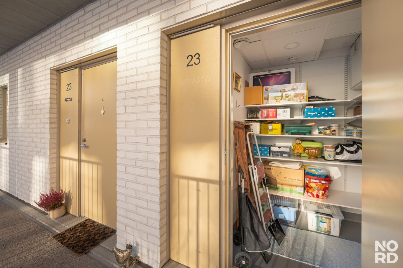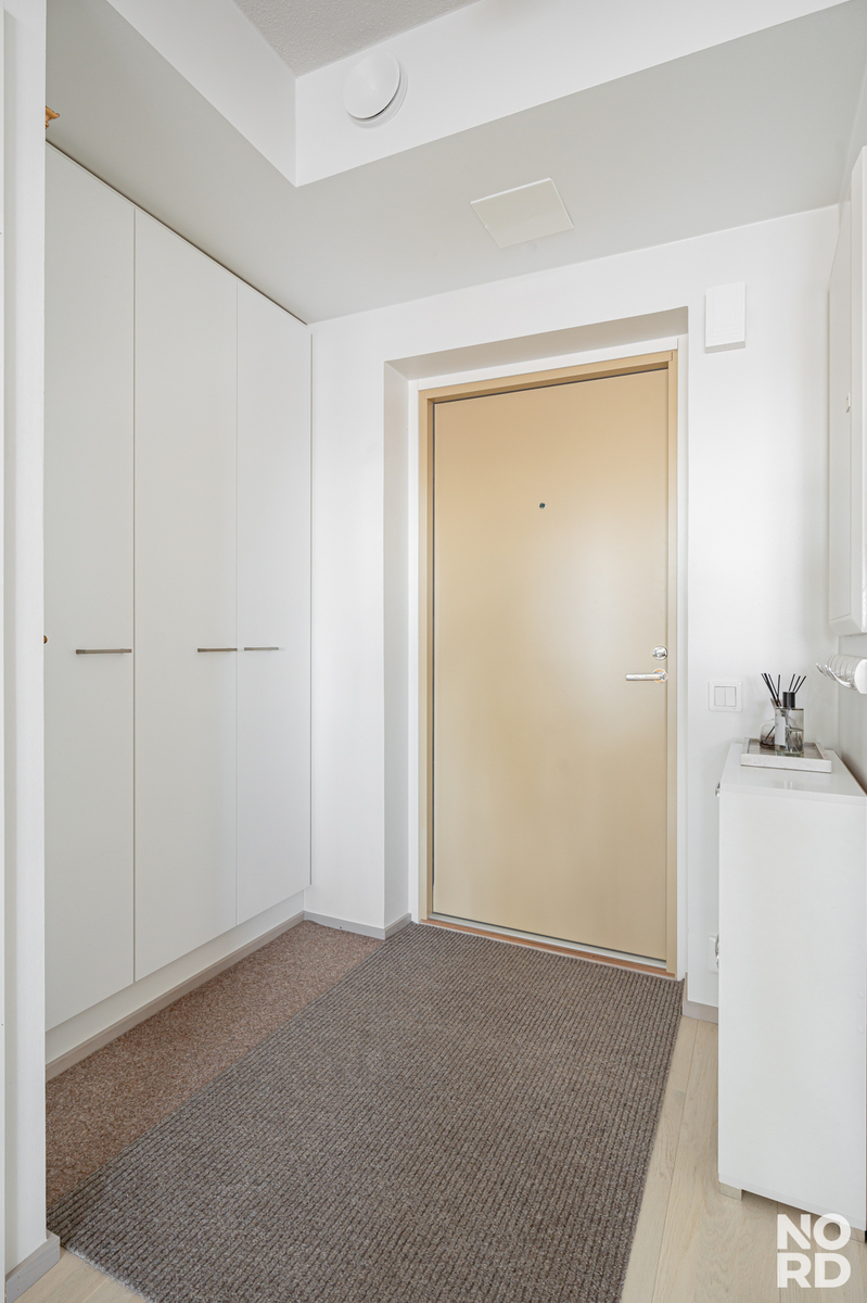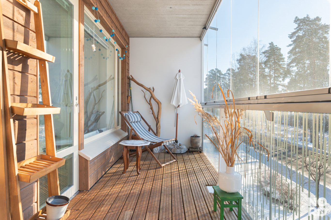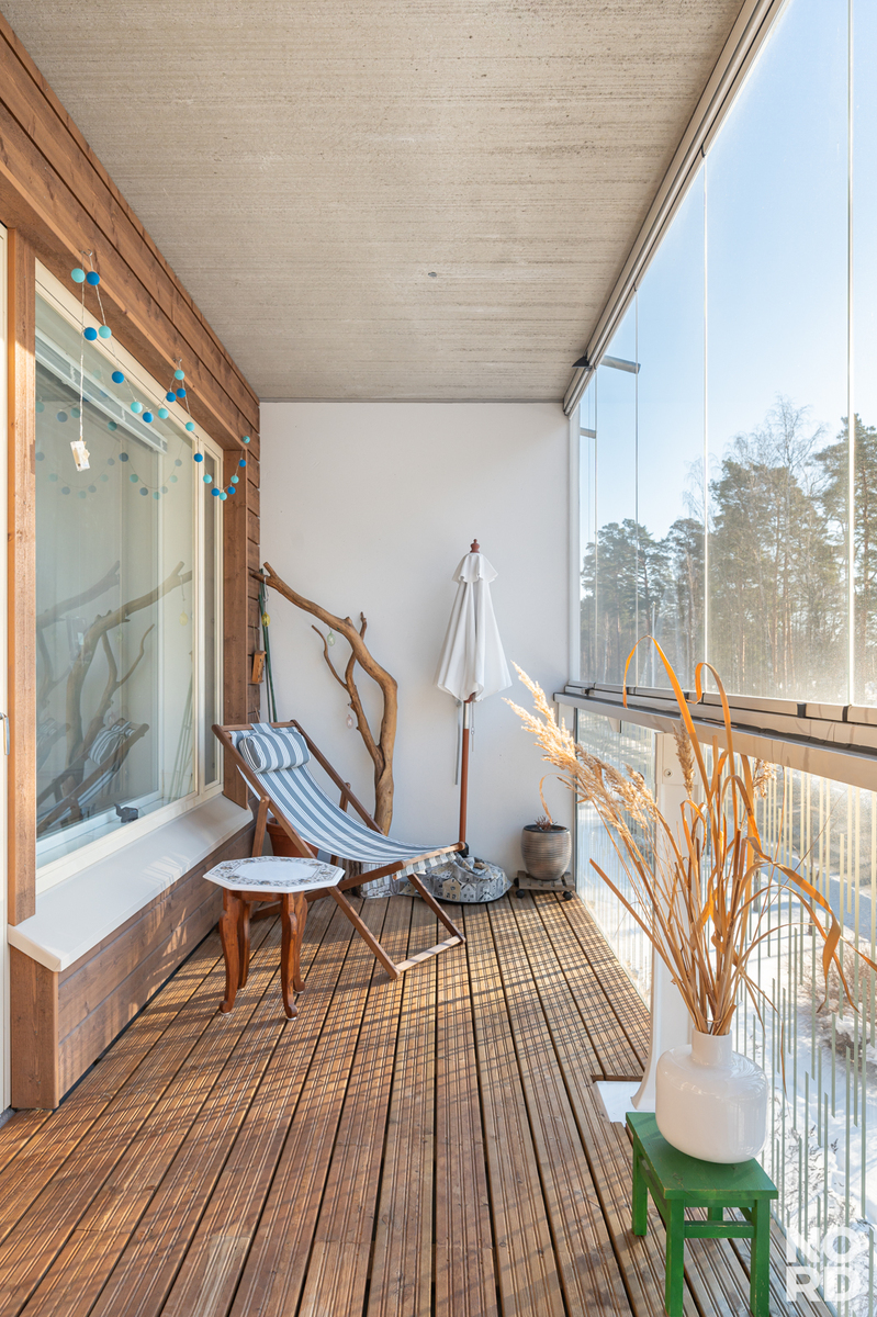| Tilojen kuvaus | Eteisessä kaapisto, seinät maalattu ja lattia parketti. Lasitettu parveke, jossa terassilautalattia. Sisäänkäynnin vieressä huoneiston oma lämmin varasto. |