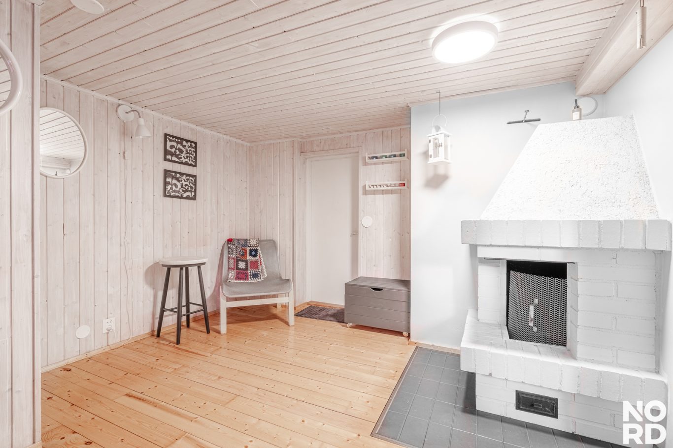 | Tilojen kuvaus | Takkahuoneen lattia puuta, seinät panelia |