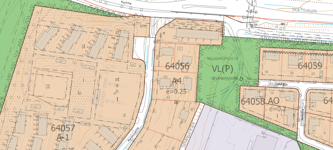 Oma 983 m2:n tontti, jossa eri tasoja.