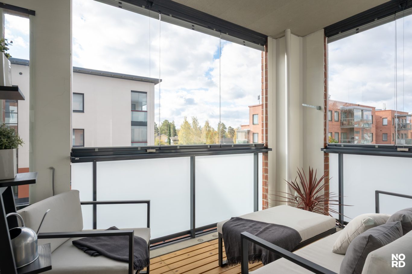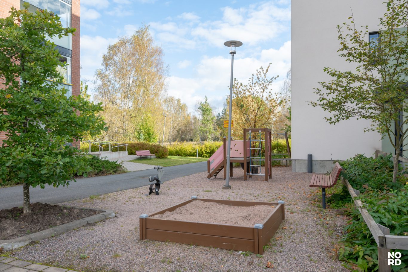 Alue on rauhallinen, vehreä ja viihtyisä asua. Asunnolta on lyhyt kävelymatka Haukilahden venesataan sekä Espoon kauniille rantaraitille, jossa upeat lenkkeily- ja uintimahdollisuudet kahviloineen ja ravintolapalveluineen. Myös kaikki tarvittavat palvelut löytyvät läheltä. Mm. Iso Omena kattavine palveluineen, metroasema sekä Kehä-II:sen ja Länsiväylän yhteydet.