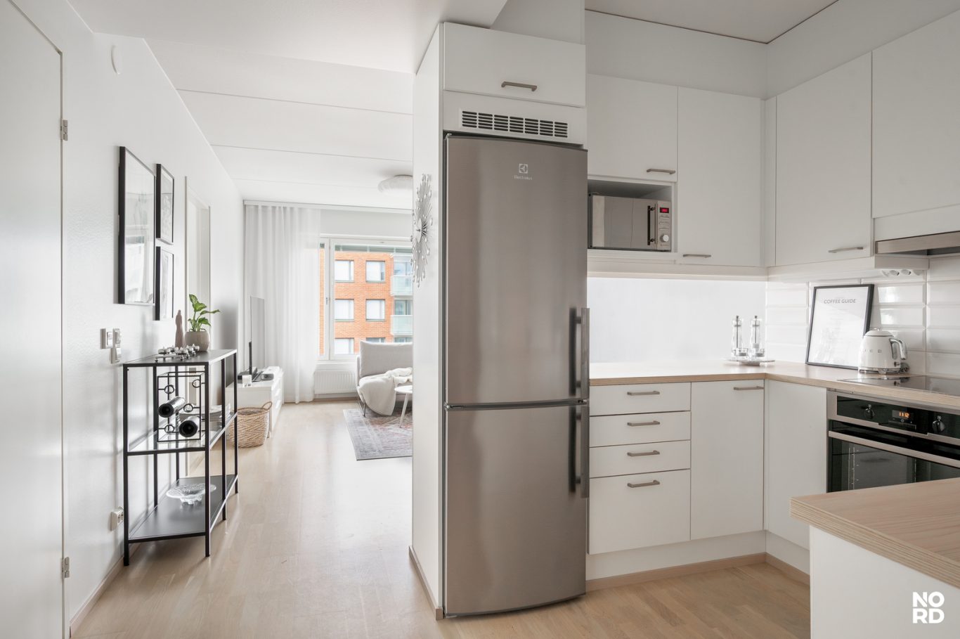 Modernin ja tilavan 57m2 kaksion avaruutta ja valoisuutta korostavat suuret ikkunat ja loistava pohjaratkaisu. Tyylikkään keittiötilan varustuksiin kuuluu laadukkaat kodinkoneet ja hyvät kaappi- sekä laskutilat. Ruokailutila yhdistyy olohuoneen kanssa yhdeksi avaraksi ja viihtyisäksi kokonaisuudeksi, keitaaksi jossa on mukava viettää iltaa niin perheenjäsenten kuin ystävien kanssa.