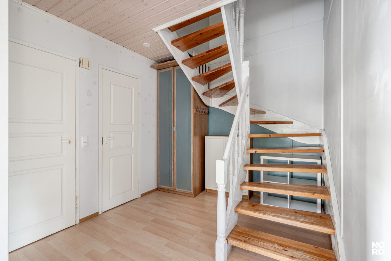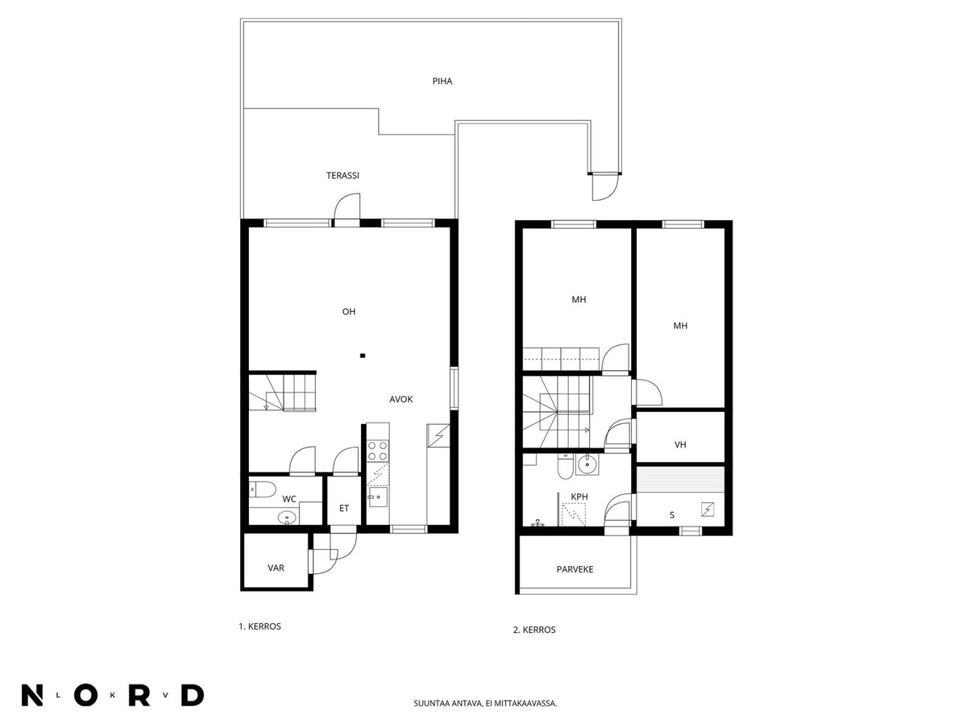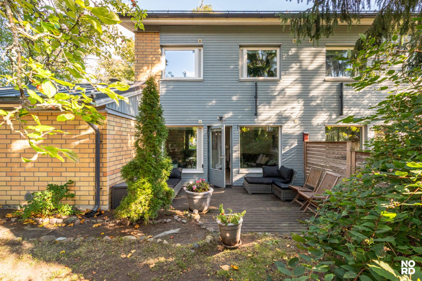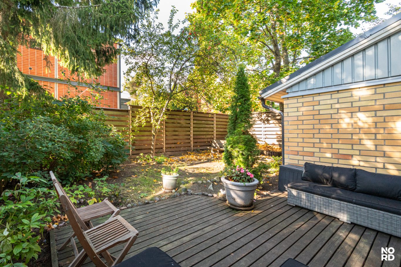 Asunnon pohjaratkaisu on erittäin toimiva. Alakerrassa arki sujuu hyvin yhdessä olemisen, ruuan laiton ja rentoutumisen merkeissä. Keittiö, jossa mukavasti kaappi- ja laskutilaa, ja sen ääreen mahtuu hyvin ruokapöytä. Avara olohuone, josta käynti omalle aidatulle reilun kokoiselle pihalle. Alakerrassa lisäksi erillinen wc ja eteisaula. Yläkerran omassa rauhassa kaksi makuuhuonetta, ja kylpyhuone sekä sauna. Kylpyhuoneesta käynti parvekkeelle. Yläkerrassa lisäksi vaatehuone.