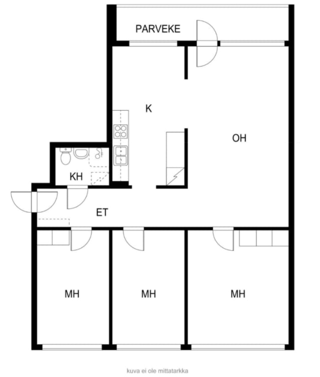 | Huoneistoselitelmä | 4h, k, kph, parveke |