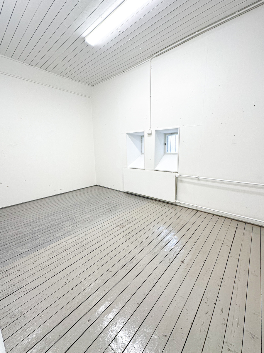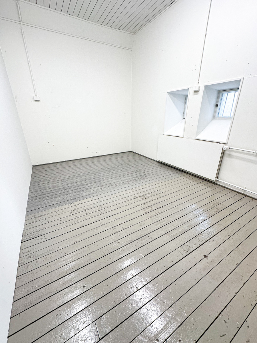 Tila soveltuu erinomaisesti työpajaksi, taiteilijan huoneeksi, työhuoneeksi, toimistoksi tai muuhun vastaavaan käyttöön – mahdollisuuksia on runsaasti ja tila muuntautuu moneen tarpeeseen.