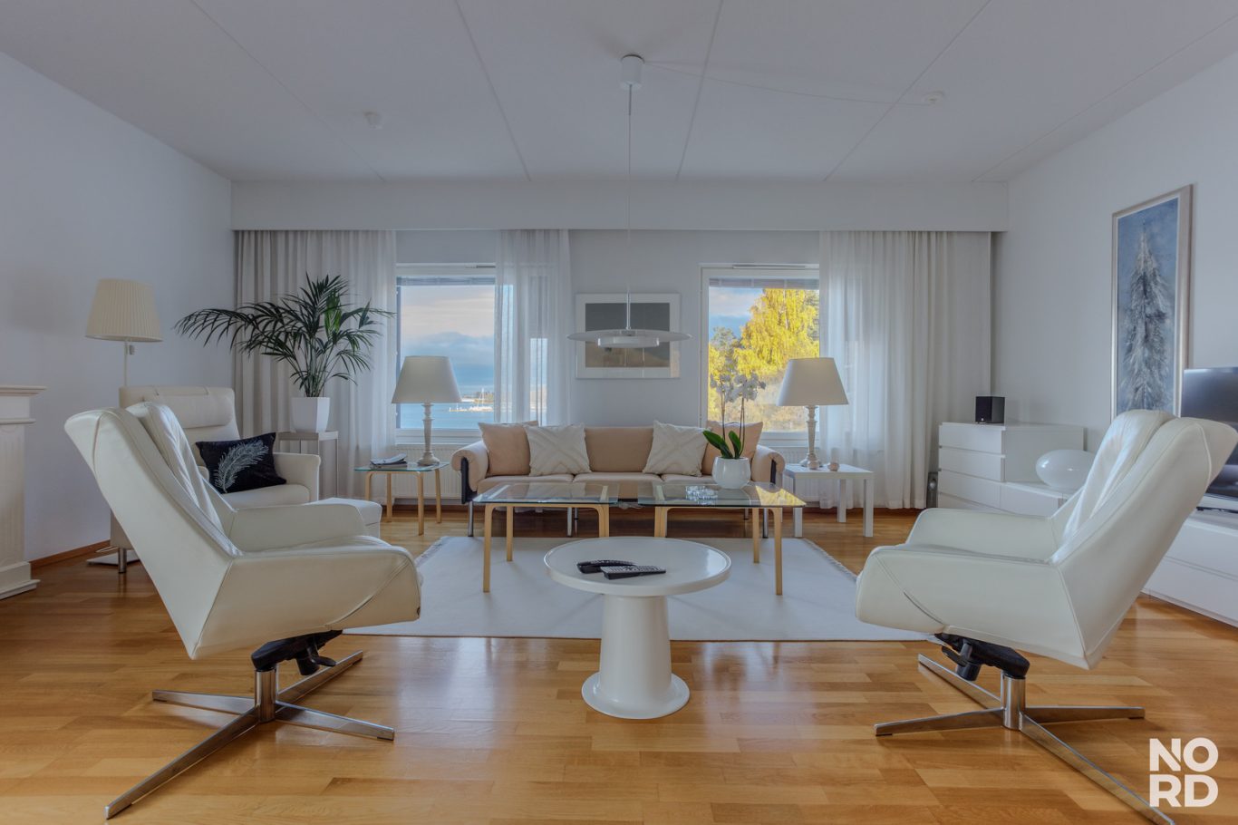Merellisessä Kivenlahdessa, päättyvän tien päässä, sijaitsee tämä 103 m²:n hyväkuntoinen koti, josta avautuvat esteettömät merinäköalat molemmilta parvekkeilta.