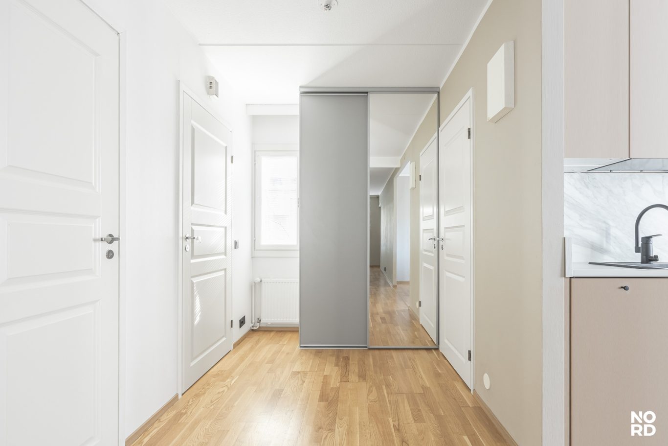 Kulmahuoneistoa on remontoitu seuraavasti: keittiöremontti, asuintilojen seinät ja katto on maalattu, kylpyhuoneen pinnat on maalattu ja vesikalusteet on vaihdettu. Huoneistoremontit on tehty vuonna 2022. Olohuone on avara ja valoisa ja siitä on käynti parvekkeelle. Asunnossa on tyylikäs ajanmukainen keittiö, valkoharmaa kylpyhuone sekä vaatehuone tavaransäilytykseen. Koti sijaitsee 3. kerroksessa.