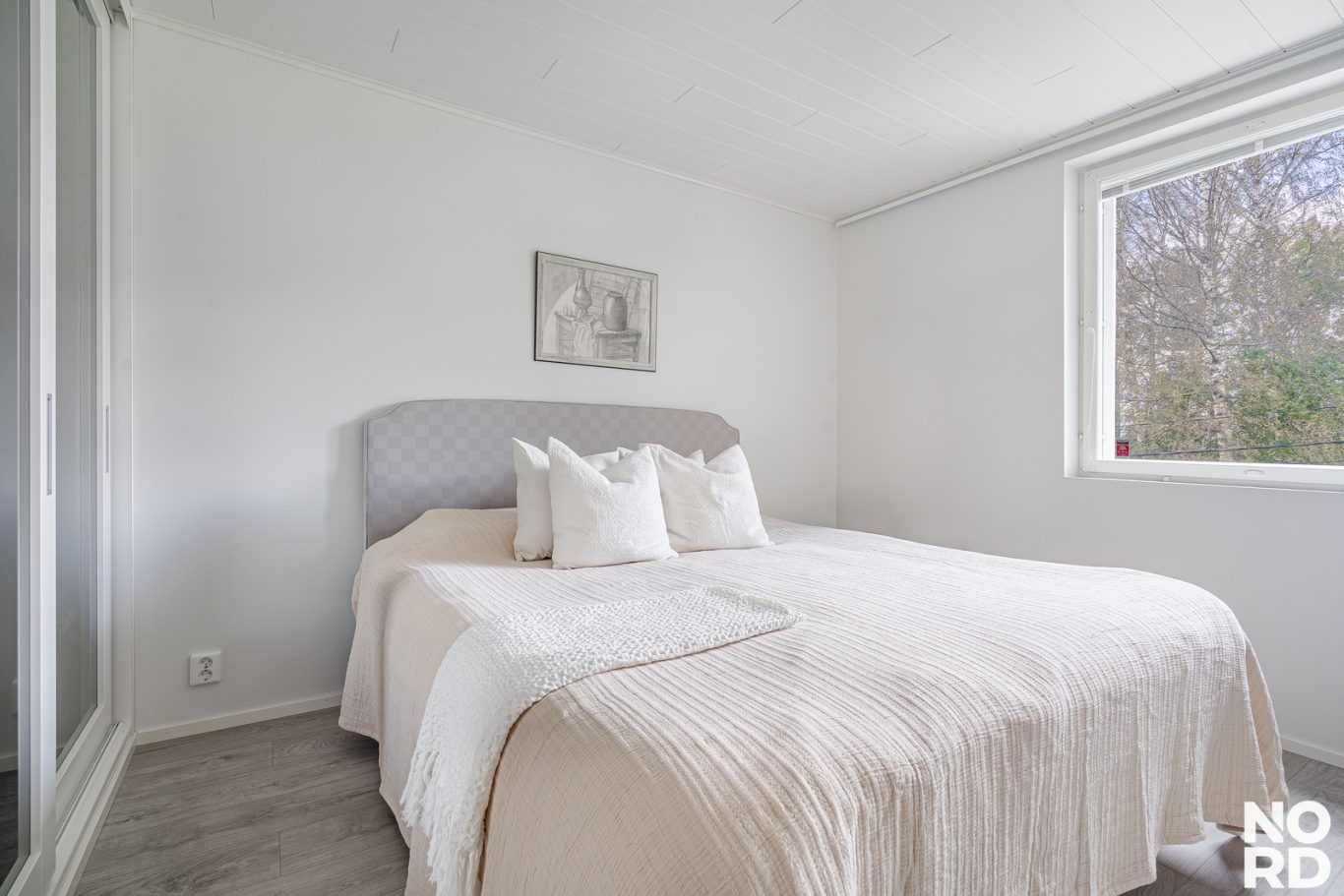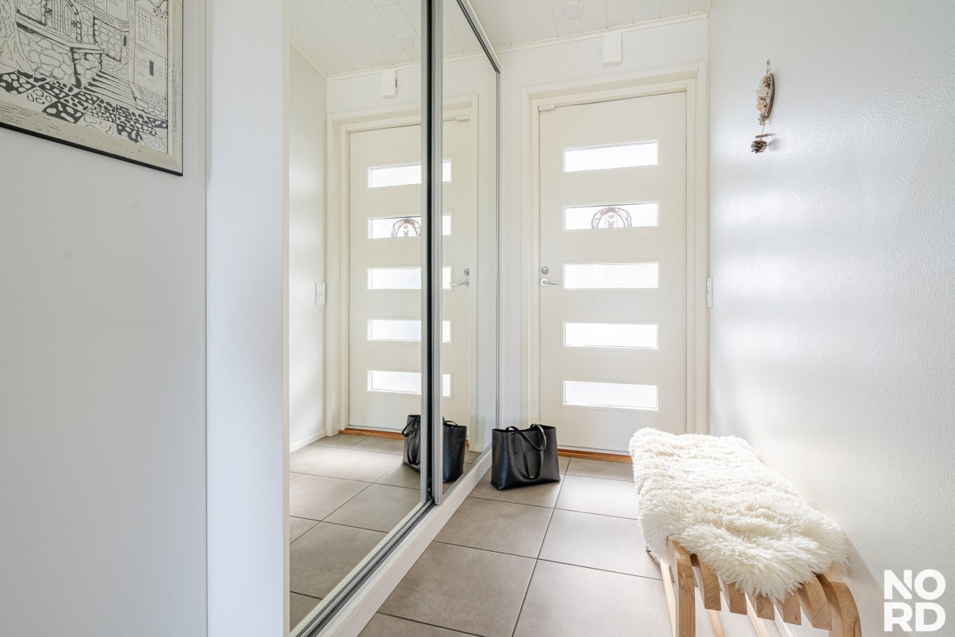 Kodissa on 5h + avokeittiö + 2x kph + sauna + khh + 2x WC + varasto + autokatos, yhteensä 124,7 m². Tilat on jaettu kahteen kerrokseen erittäin toimivalla pohjaratkaisulla. Neljä reilunkokoista makuuhuonetta, kaksi ylä- ja kaksi alakerrassa, mahdollistavat rauhalliset yöunet niin vanhemmille kuin lapsillekin tai työskentelytilan etätöihin.