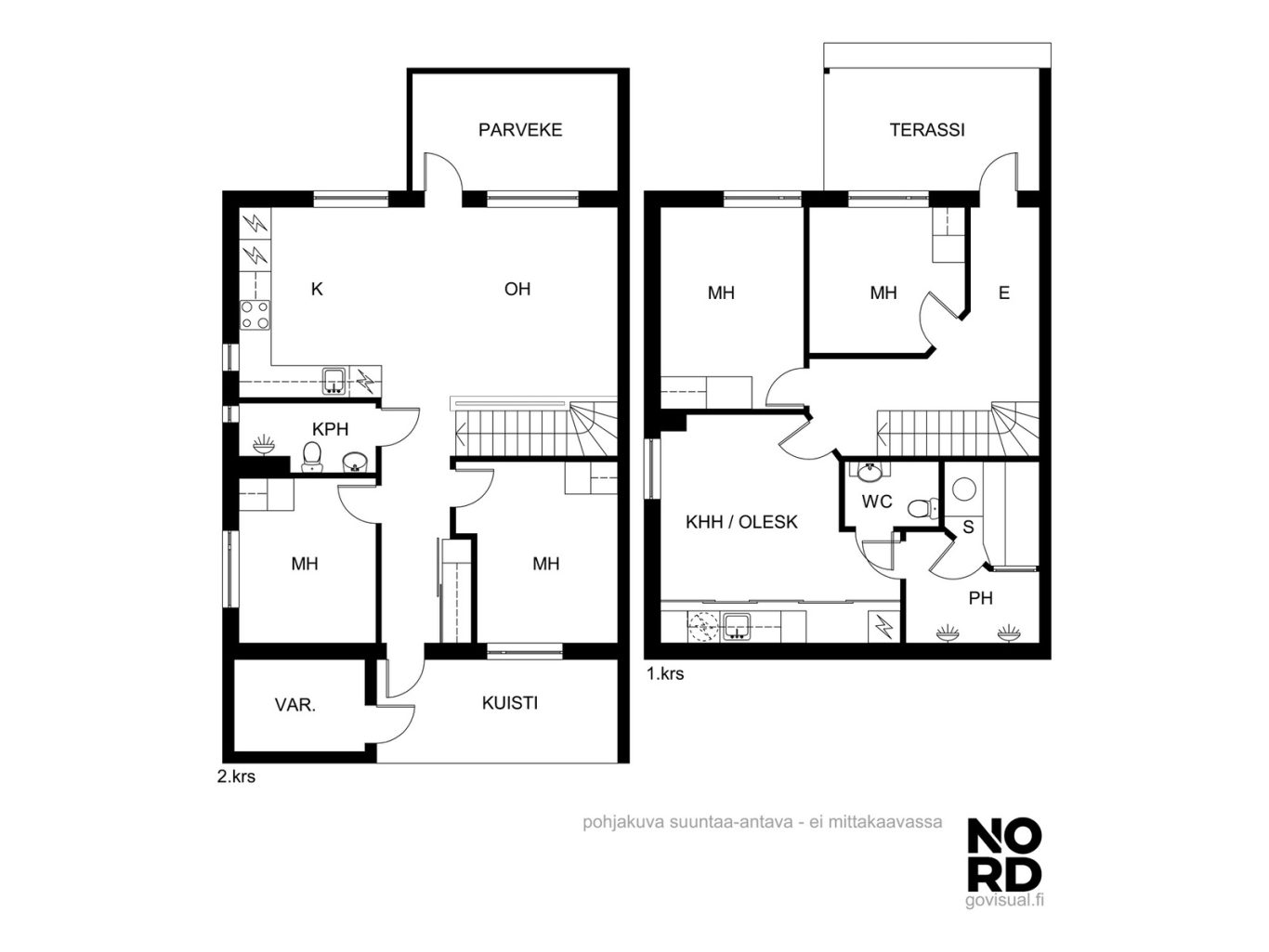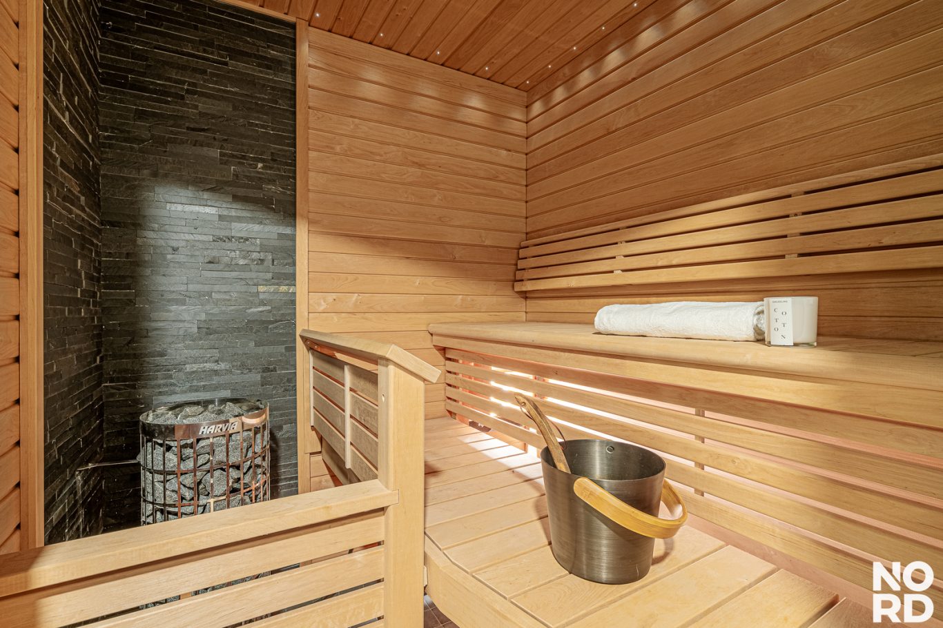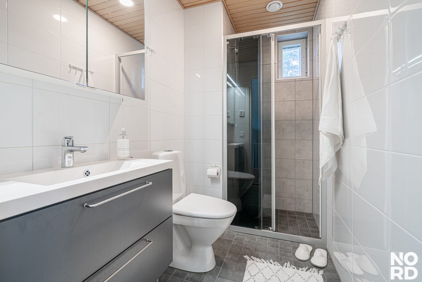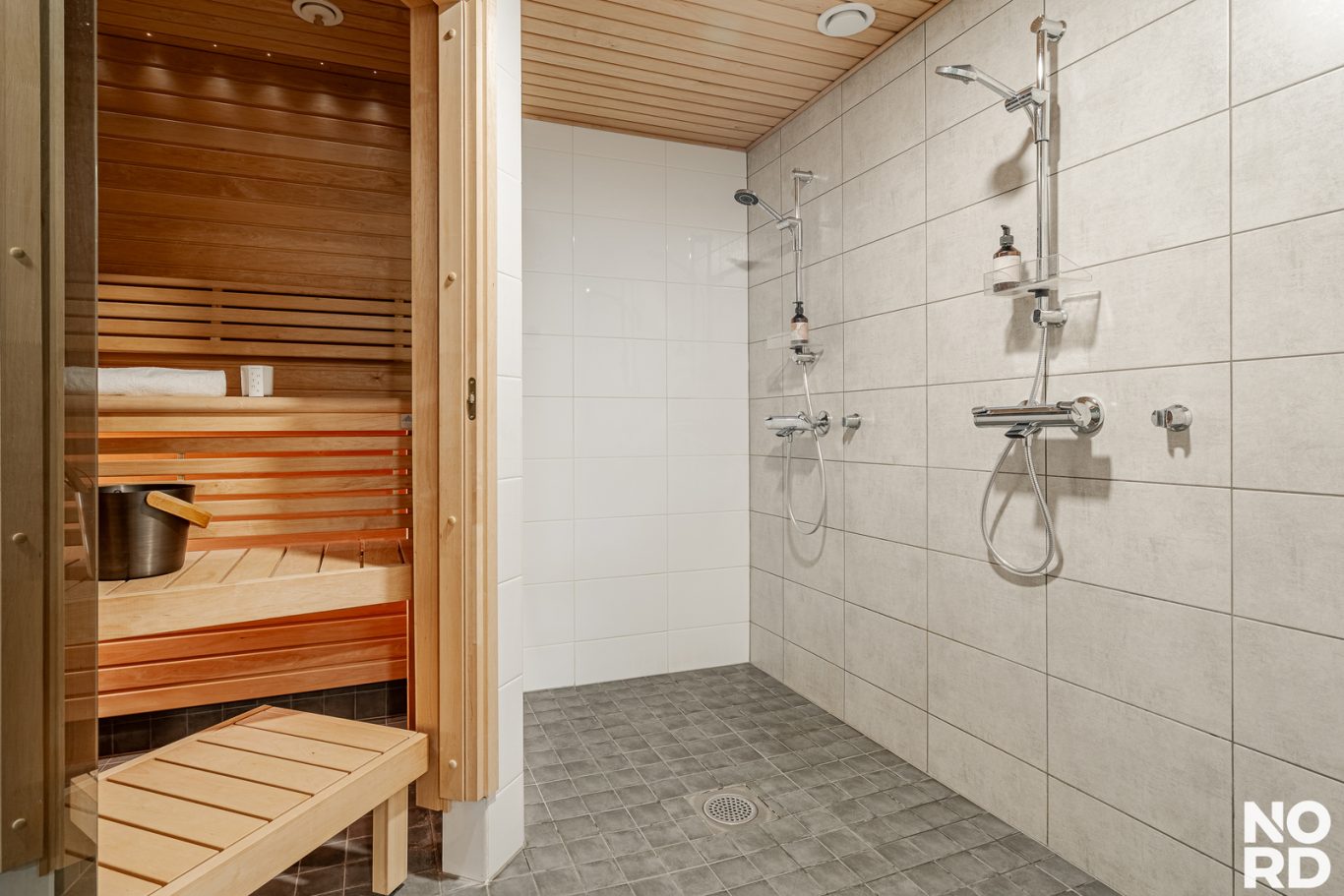 – 2 kylpyhuonetta + sauna + kodinhoitohuone + 2 WC:tä