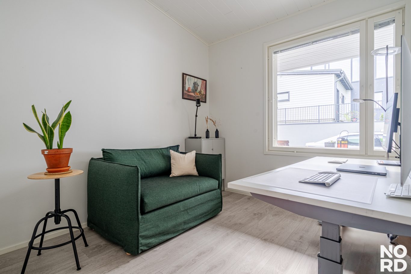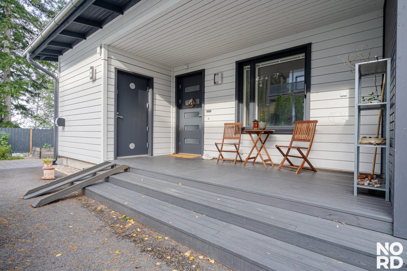 Kodinhoitohuone, kaksi kylpyhuonetta ja erillinen WC helpottavat kiireisiä aamuja toiminnallisuus ja arjen sujuvuus on viety huippuunsa. Turvallinen oma tontti (n. 380 m²) tarjoaa tilaa leikkiin ja pihapeleihin. Pihalle on tehty maisemasuunnittelijan suunnitelman mukaan piharemontti (2024). Autokatospaikka sekä pihapaikka, säilytyskaapistot ja ulkovarasto tarjoavat arjen toimivuutta.