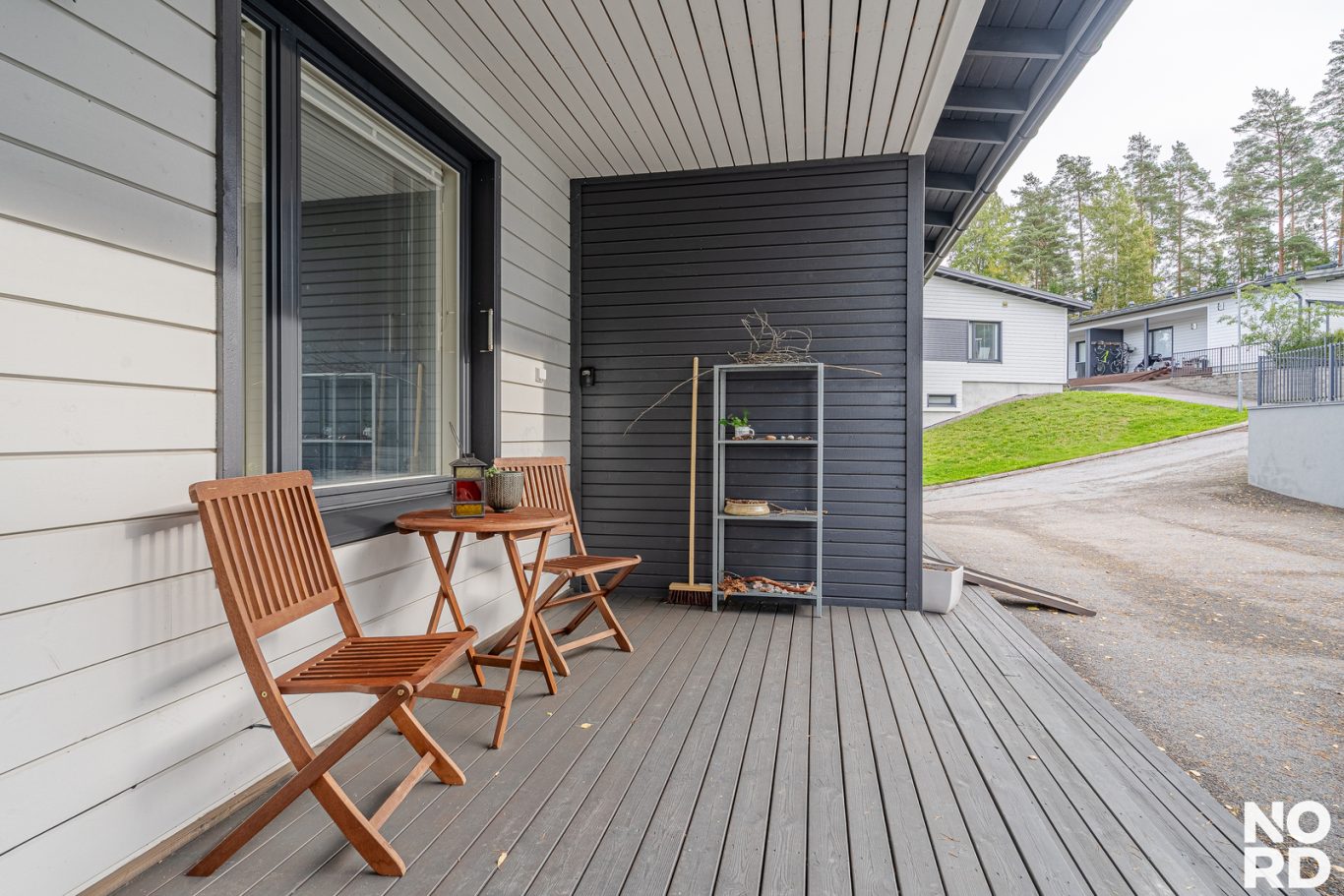Tämä vuonna 2018 valmistunut paritalon puolikas tarjoaa kaikki elementit, joita nykyaikainen lapsiperhe arvostaa: tilaa, toimivuutta, turvallisuutta ja viihtyisyyttä. Sijainti rauhallisella rinnetontilla vehreässä Kurttilassa yhdistää luonnonläheisyyden ja arjen sujuvuuden loistavalla tavalla.